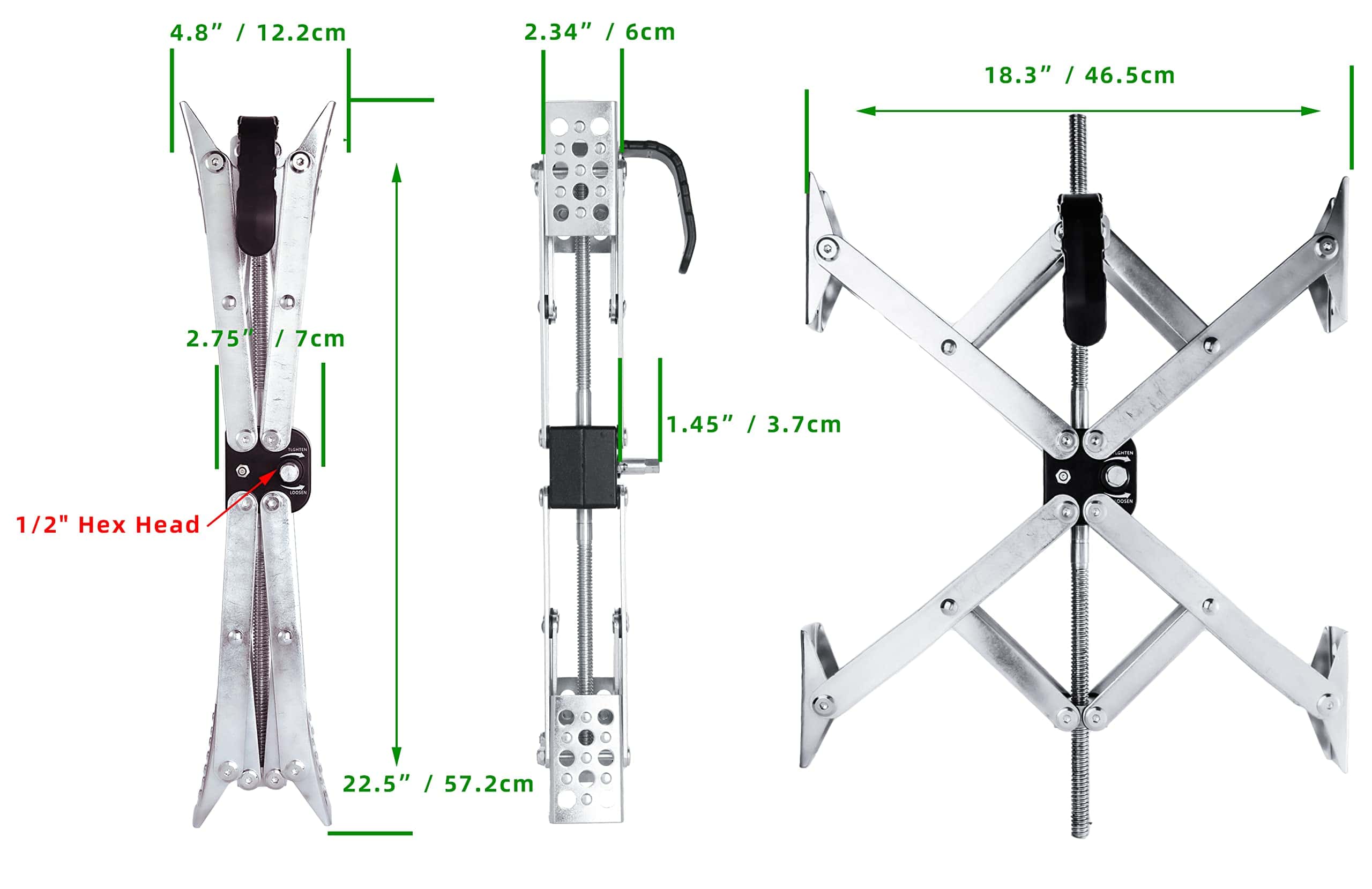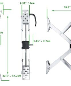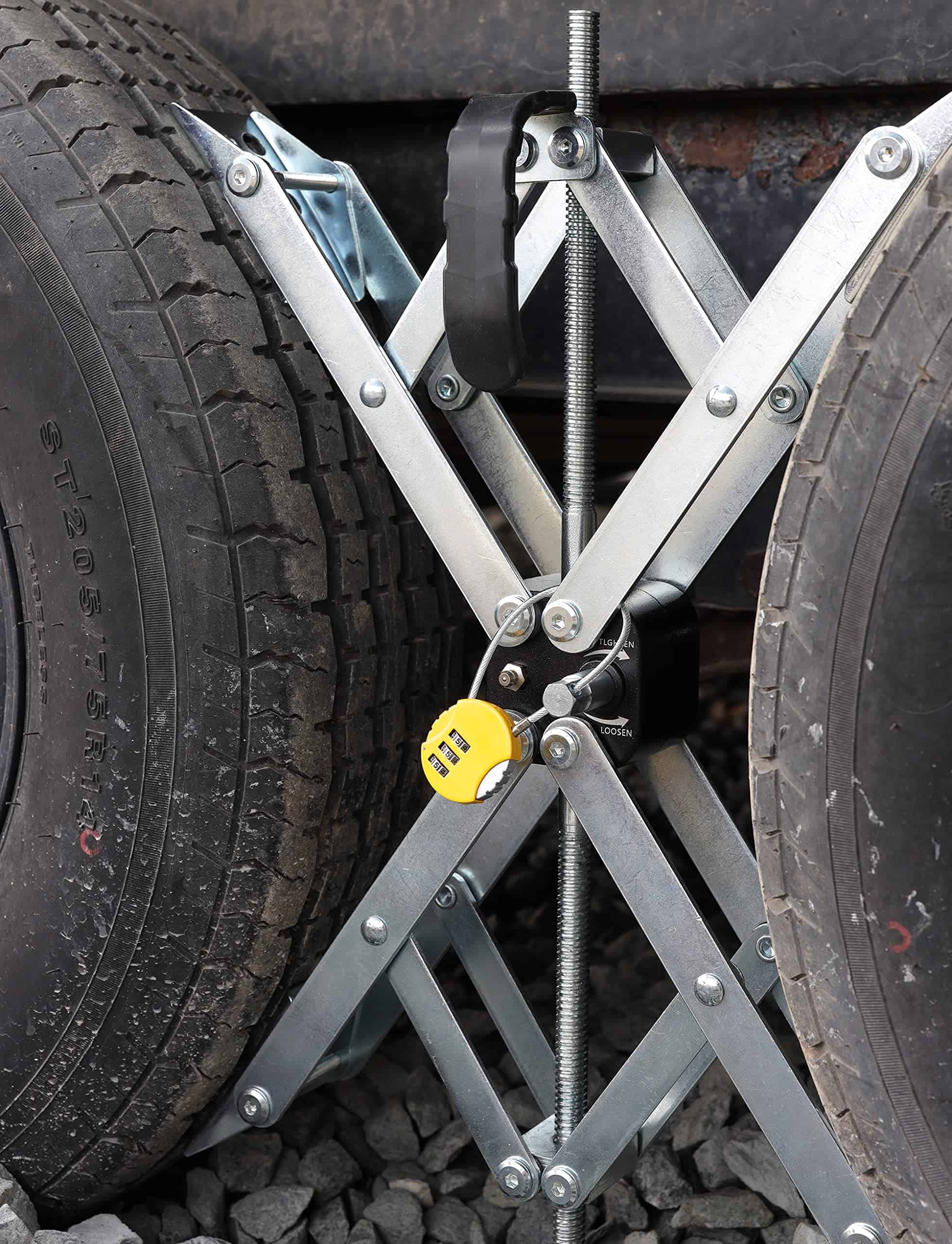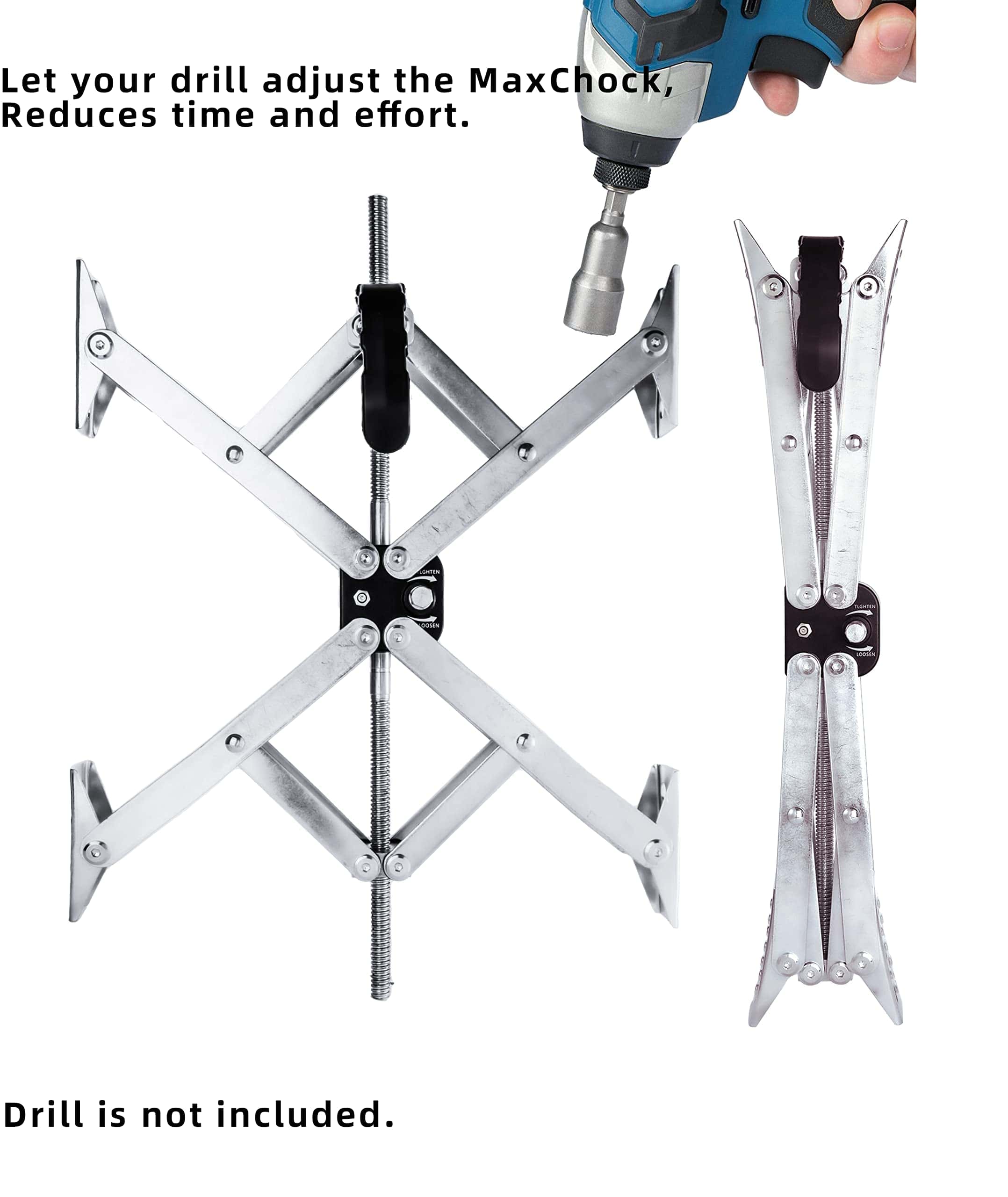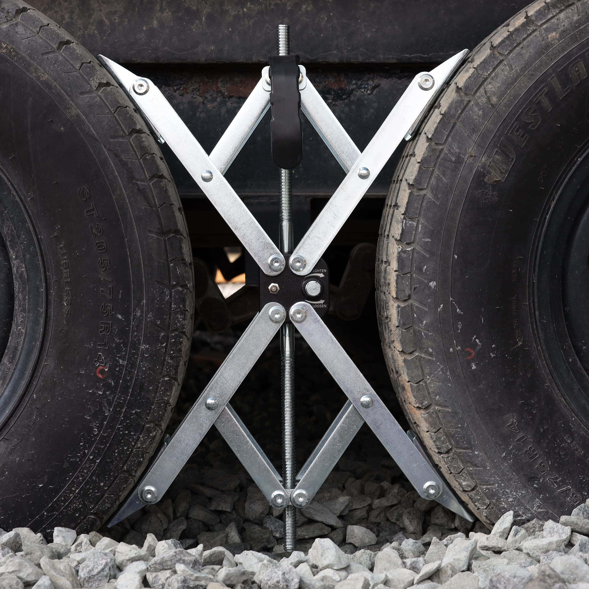Bloquee el estabilizador de ruedas x chocks de Maxchock entre las llantas tándem de su remolque o RV para mantener sus remolques de viaje estables, cómodos y seguros. Con la broca incluida, puede ajustar e instalar rápidamente los bloques de ruedas x de Maxchock con cualquier taladro eléctrico en segundos, sin necesidad de girar manualmente. Nunca tendrá que preocuparse por el espacio entre las llantas: nuestros estabilizadores de ruedas de RV se extienden para adaptarse a distancias de ruedas desde 10» hasta 17» en remolques de viaje, autocaravanas Clase A, remolques de quinta rueda, remolques de juguete y más. Nuestros estabilizadores de neumáticos de RV están hechos de acero duradero de calibre pesado con un recubrimiento de zinc resistente a la corrosión para un uso prolongado en exteriores en cualquier superficie. Además de las tijeras estabilizadoras de ruedas, también incluimos cerraduras para una mayor seguridad, para que pueda dejar su vehículo en paz.