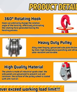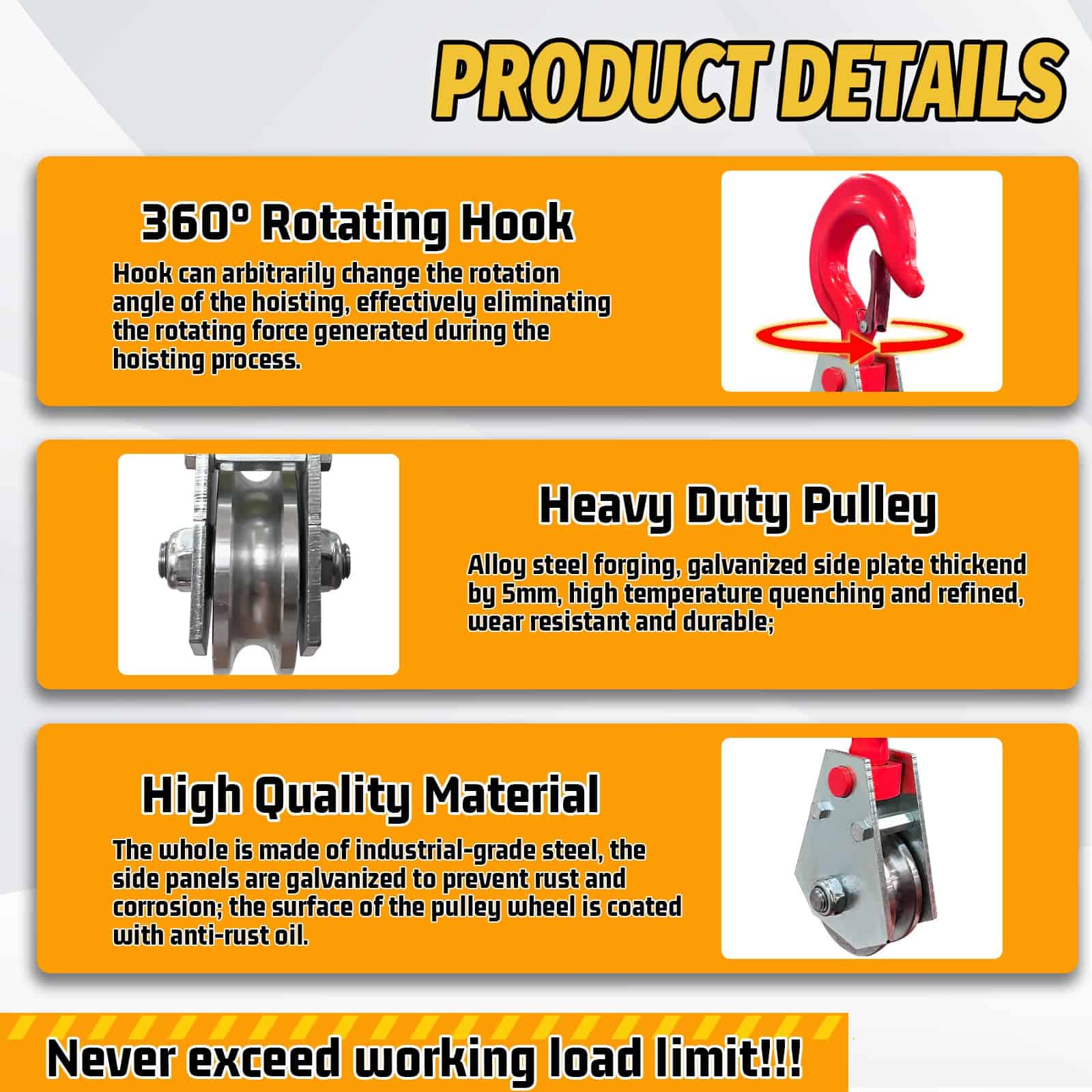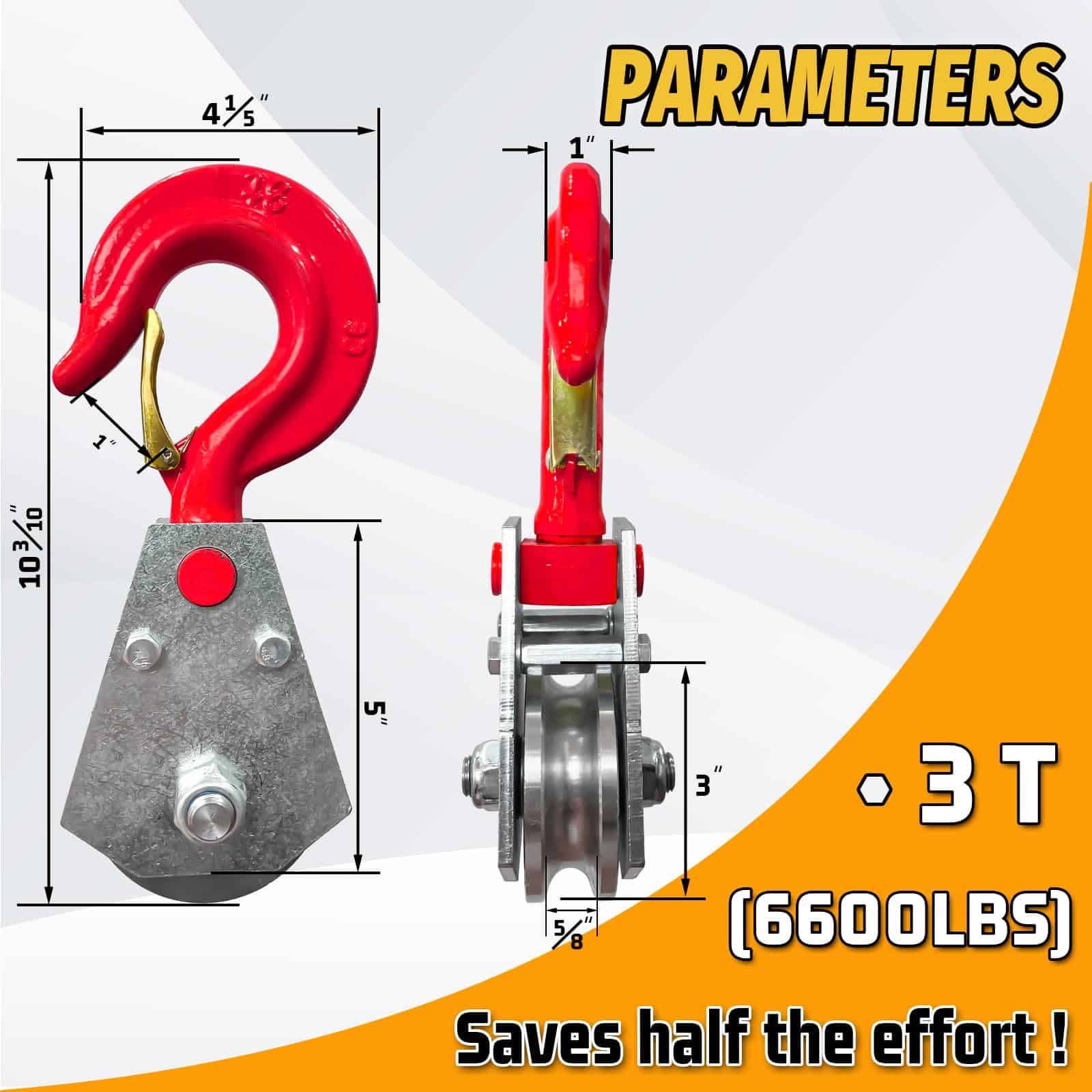 Bloque de Tiro de 3 Toneladas SENKEYFE con Gancho, para