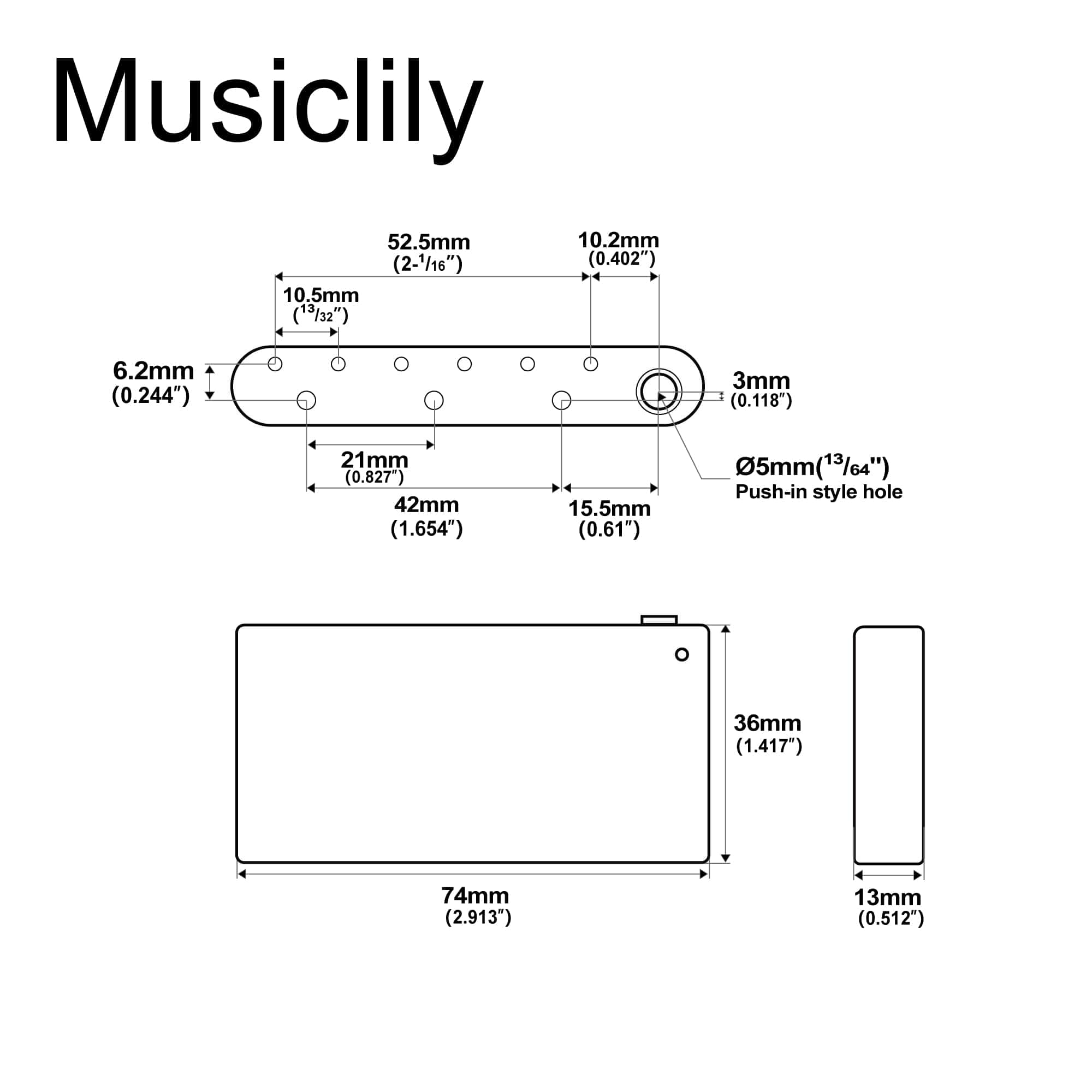 Bloque de trémolo de acero sólido Musiclily Ultra de 52,5 mm (2-1/16 pulgadas) para guitarra eléctrica estilo Strat con puente Wilkinson M Series, 36mm de altura. Fabricado en acero sólido, mecanizado con precisión CNC, este bloque ofrece más sustain y estabilidad que el bloque de puente de trémolo de aleación de zinc estándar. Perfecto para guitarras Stratocaster con puente Wilkinson M Series, este bloque de trémolo es una excelente opción de reemplazo o mejora para tu guitarra.
