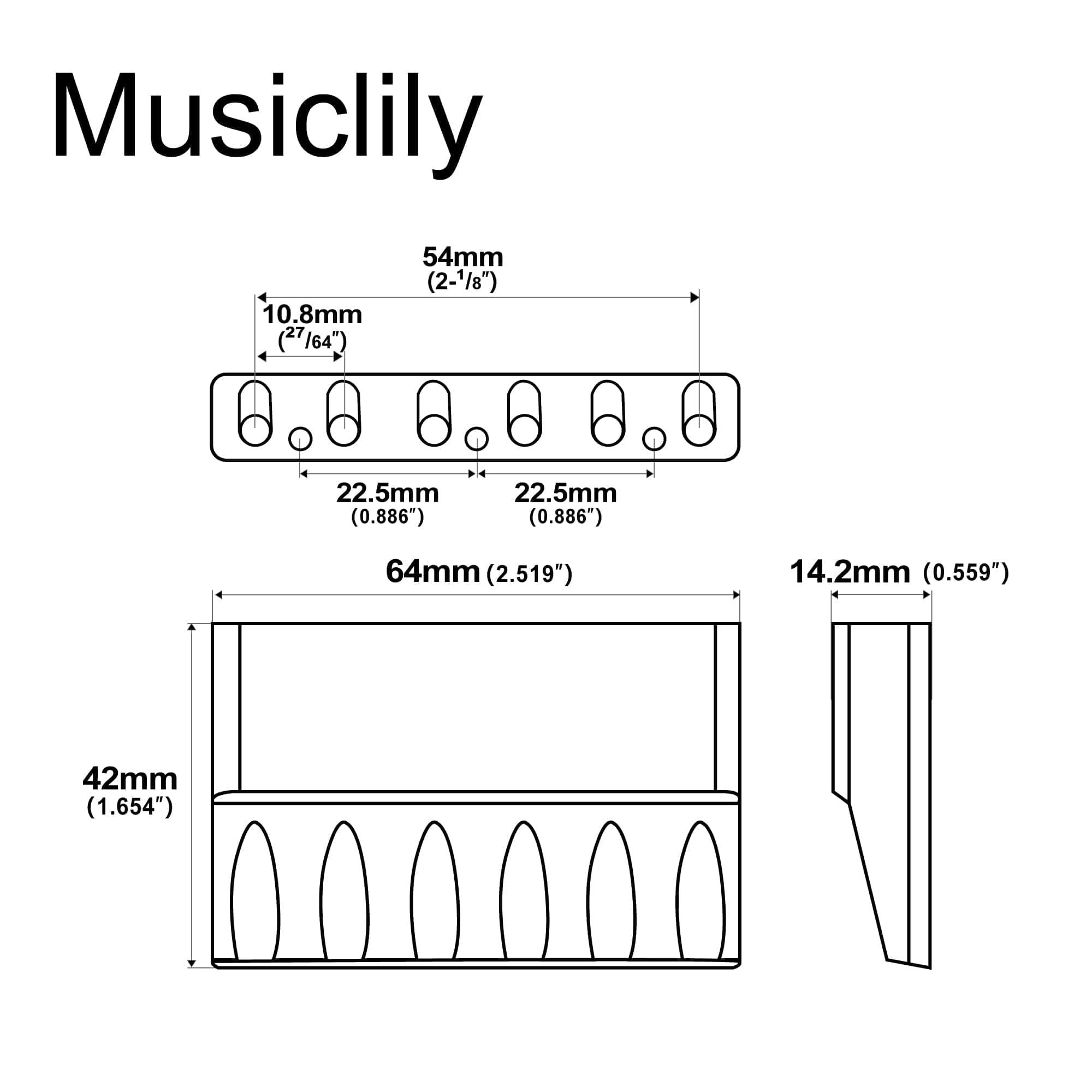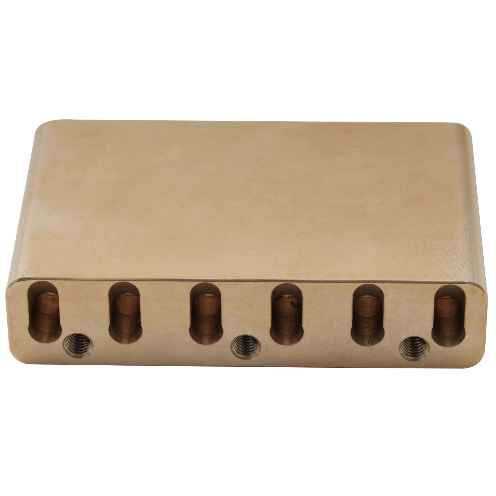 Bloque de trémolo de latón macizo completo Musiclily Ultra de 54 mm de espaciado de cuerdas y 42 mm de profundidad para puente de trémolo de la serie Gotoh 510T. Este bloque de trémolo clonado del mecanismo FST de GOTOH está diseñado para proporcionar una mejor entonación y sostenido a tu guitarra. Fabricado en latón macizo completo, es una excelente opción para mejorar el sonido de tu guitarra. Asegúrate de medir tanto tu puente como el cuerpo de tu guitarra antes de comprar para garantizar la compatibilidad.