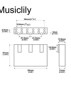Bloque de trémolo de latón macizo de 54 mm (2-1/8 pulgadas) de espaciado de cuerdas para puente de trémolo Wilkinson By GOTOH VG300/VS100N, 41 mm de alto.