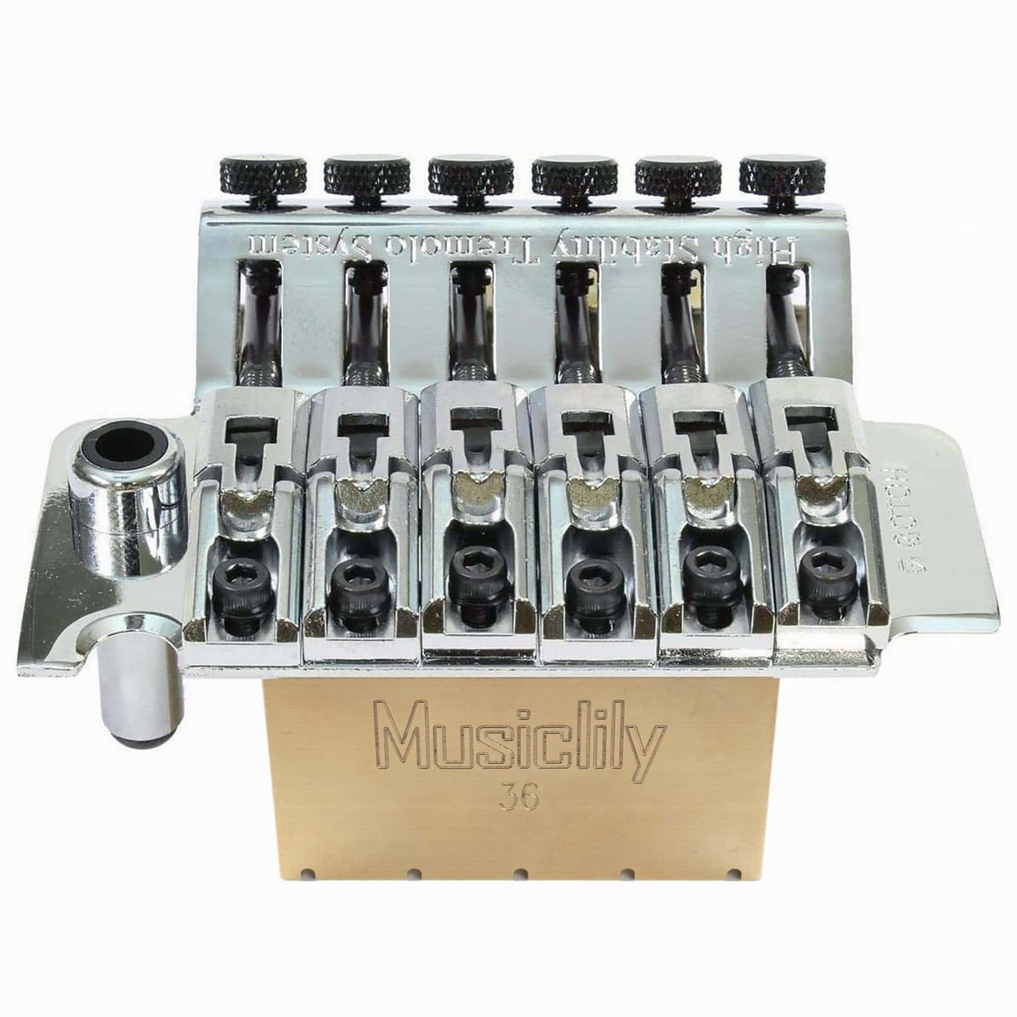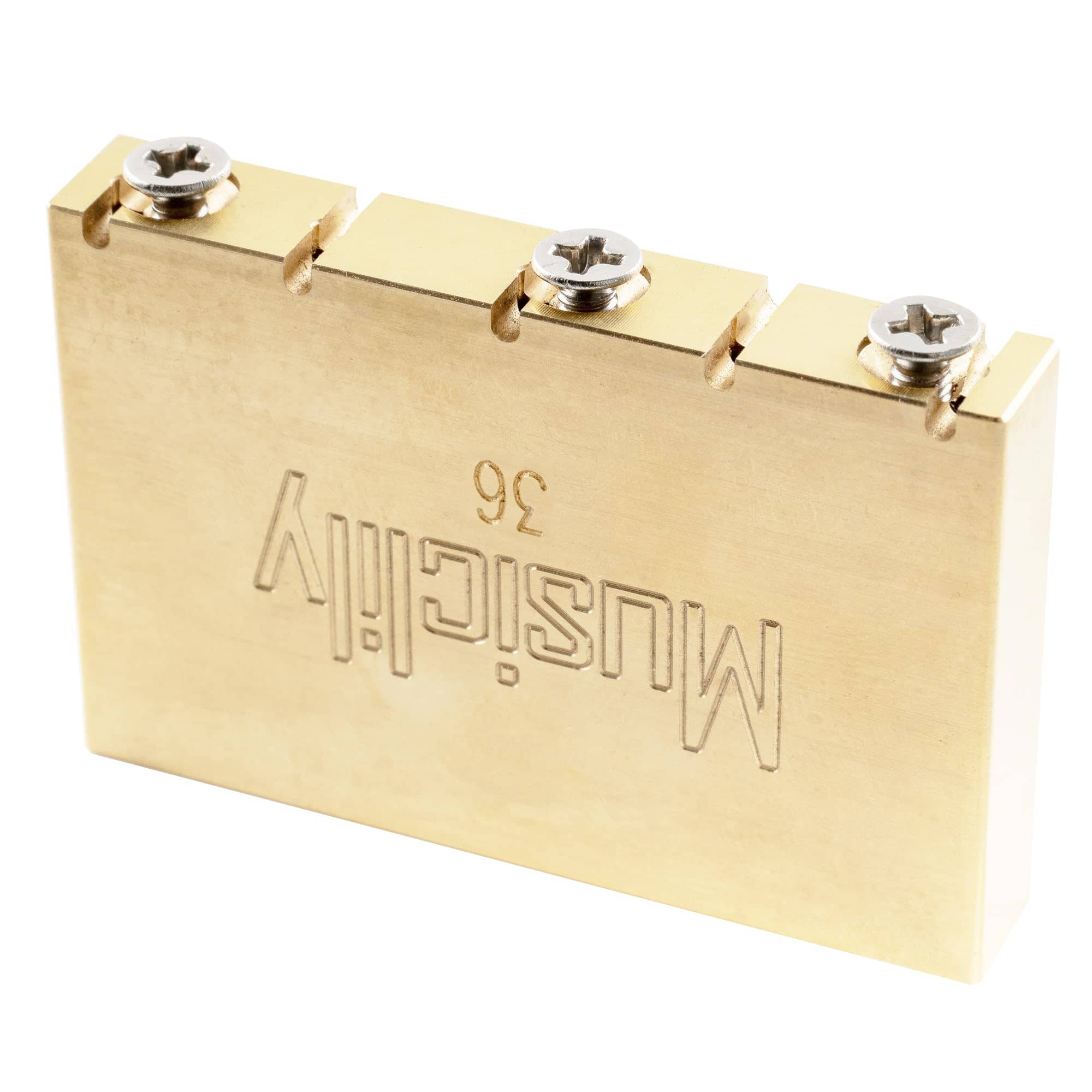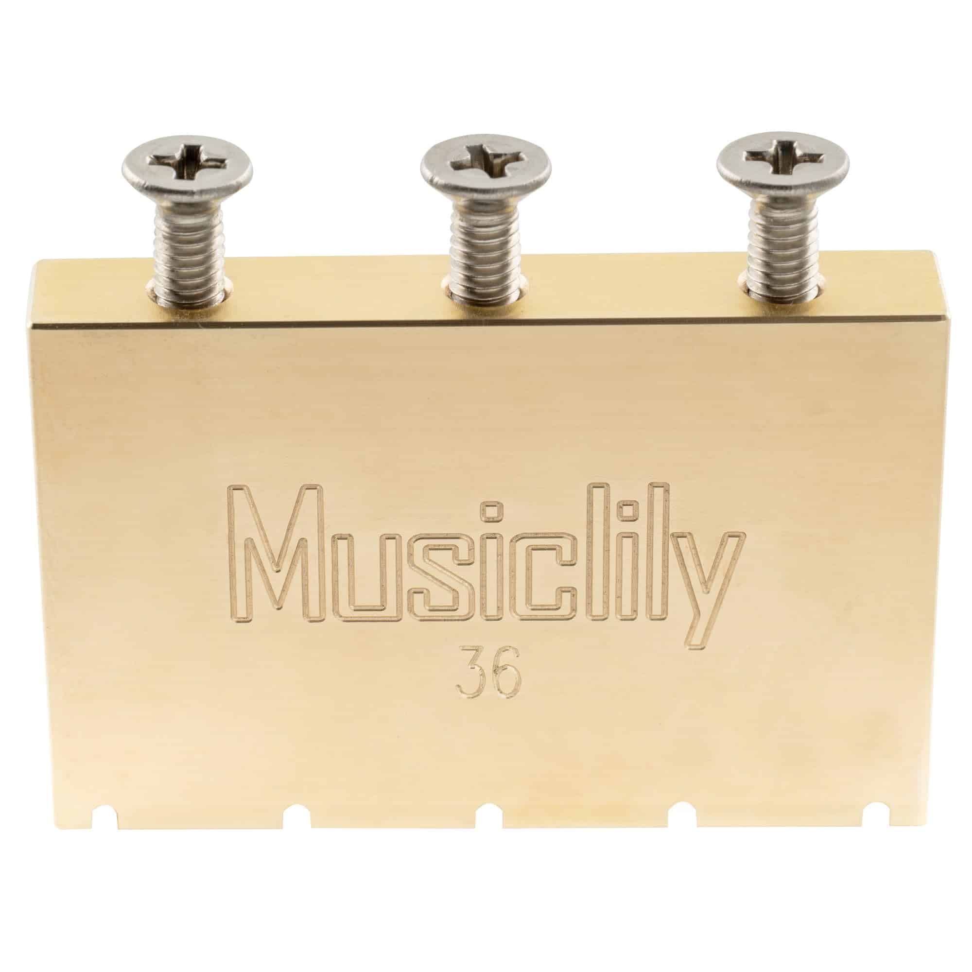Bloque de trémolo de latón sólido ultra Musiclily para puente trémolo con bloqueo estilo Floyd Rose Gotoh GE1996T para guitarra eléctrica, 36mm de alto. Este bloque de trémolo de latón sólido completo es una excelente opción para quienes buscan mejorar su guitarra. Con su mecanizado preciso y la protección añadida en la superficie, este bloque ofrece un sustain impresionante y una calidad duradera. Perfecto para reemplazar el bloque original y actualizar tu instrumento.