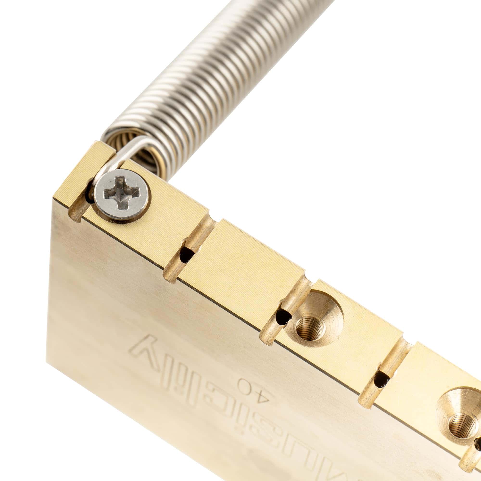 Bloque de trémolo ultra sólido de latón de calidad premium para puente de trémolo bloqueable Floyd Rose Gotoh GE1996T para guitarra eléctrica, 40mm de alto. Este bloque de trémolo de alta calidad está diseñado para ofrecer un sustain mejorado y una mayor estabilidad tonal. Fabricado con precisión utilizando la tecnología de mecanizado digital CNC, este bloque de trémolo es una excelente opción para aquellos que buscan mejorar el rendimiento y la calidad de sonido de su guitarra eléctrica.