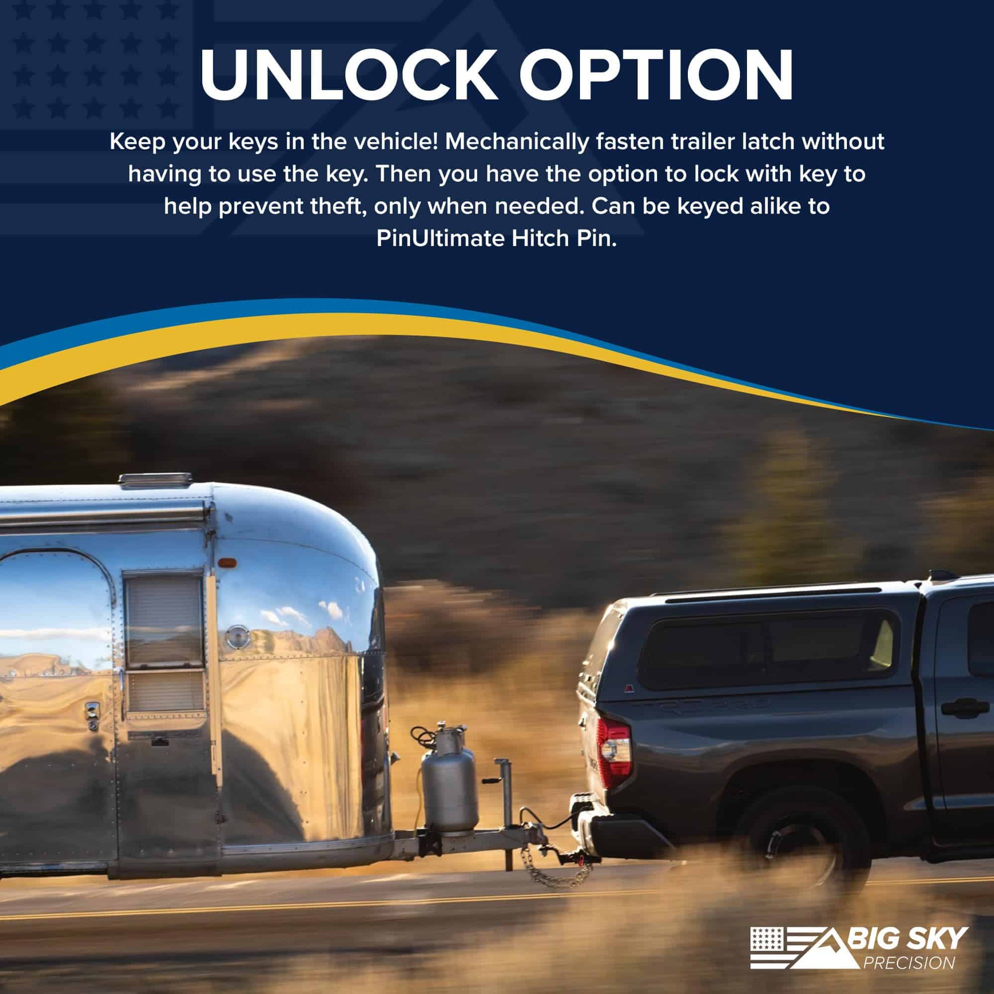 Seguridad y conveniencia se combinan perfectamente en el Bloqueo de Acoplamiento PinUltimate. Este dispositivo permite bloquear tanto el enganche de receptor como el pestillo del remolque con una sola llave, brindando una mayor tranquilidad y evitando la molestia de llevar múltiples llaves. Con la opción de desbloqueo, puede operar en una posición abierta cuando las llaves no están disponibles o cuando simplemente quiere asegurar el pestillo del remolque sin bloquearlo. La construcción duradera de acero inoxidable 316L y aluminio 6061 garantiza un rendimiento de larga duración y resistencia, mientras que el exclusivo sistema de ConnecTrick con liberación rápida permite una instalación fácil y rápida. Además, su bajo mantenimiento significa que solo necesita lavarlo cuando limpie su vehículo para garantizar un funcionamiento suave. Mantenga su remolque seguro y protegido con el Bloqueo de Acoplamiento PinUltimate.
