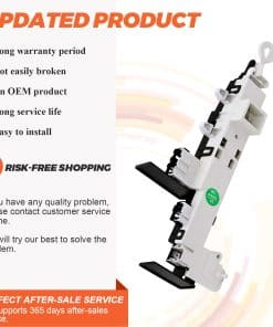 El interruptor de bloqueo de puerta de lavadora DC64-00519B sirve para reemplazar lavadoras Samsung, Maytag, Kitchen-Aid, Kenmore, Whirlpool y otras marcas. Compatible con varios modelos. Fabricado con plástico ABS y materiales metálicos de alta calidad para mayor durabilidad. Soluciona problemas como ruidos, puerta que no se desbloquea, fugas, entre otros. Instrucciones de instalación: Apague la energía y agua de la lavadora, use guantes de trabajo, desconecte los cables del interruptor antiguo y reemplácelo. Se recomienda ver un video tutorial de instalación en YouTube para evitar errores. Garantía de 365 días desde la fecha de compra.