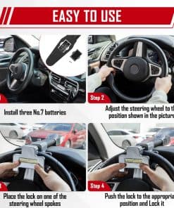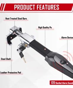 El bloqueo de volante SPARKWHIZ con alarma es un dispositivo antirrobo de alta calidad diseñado para proteger tu automóvil contra robos. Este dispositivo se puede ajustar para adaptarse a la mayoría de los volantes, lo que lo hace versátil y altamente efectivo. La alarma de 120 decibeles es extremadamente sensible, lo que garantiza que cualquier intento de robo sea detectado y disuadido de inmediato. Además de su función antirrobo, este bloqueo de volante también sirve como un martillo de seguridad, lo que te brinda una herramienta adicional en caso de emergencia. Fabricado con acero tratado térmicamente de alta resistencia y con un mango de cuero duradero, este dispositivo es resistente y duradero. Protege tu vehículo de manera efectiva con el bloqueo de volante SPARKWHIZ con alarma.