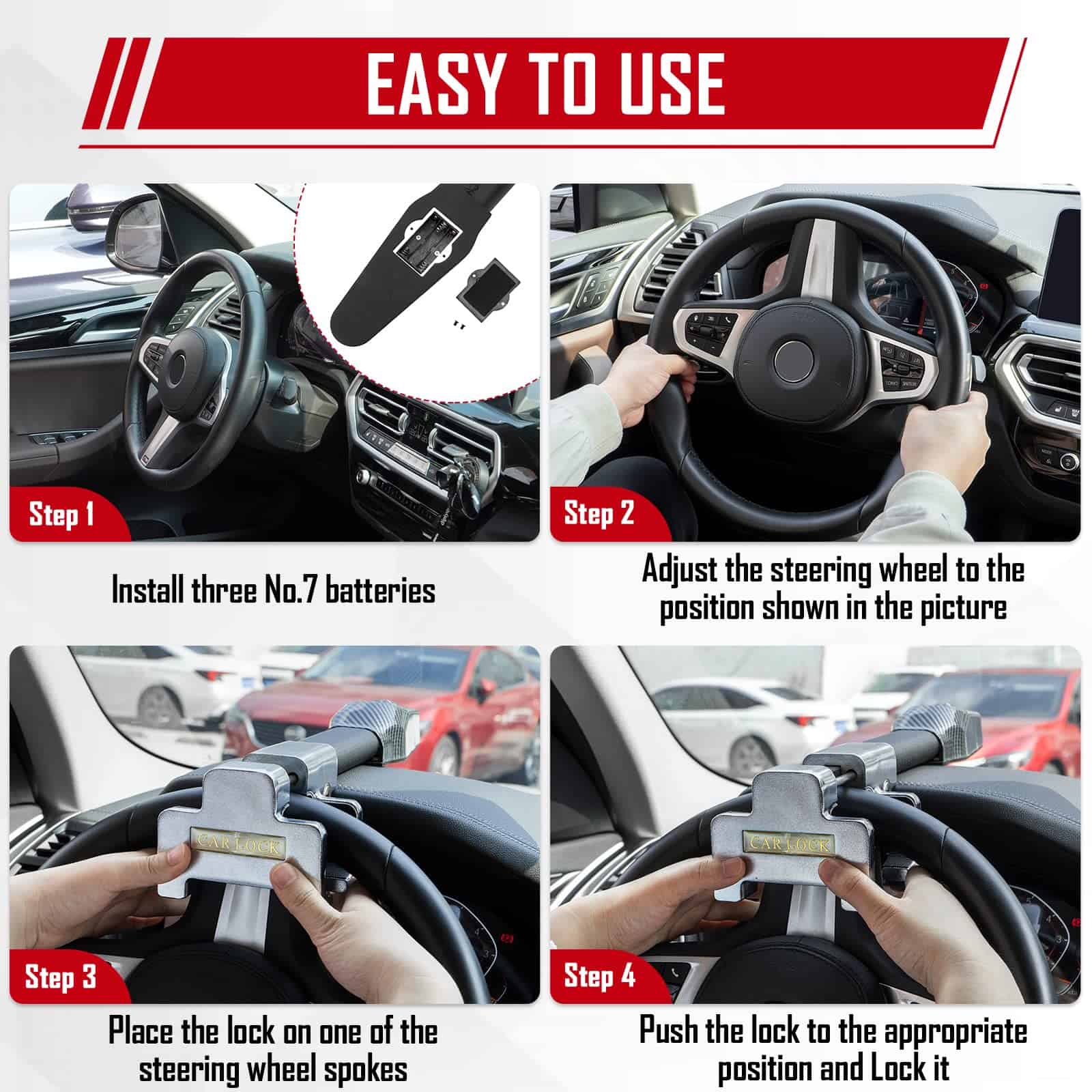 Bloqueo de volante SPARKWHIZ con alarma, dispositivo