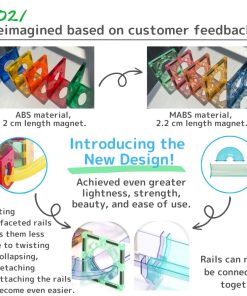 Los Bloques de Canicas Kebo 158PCS ofrecen una experiencia aún más amigable para el usuario con un rediseño y nuevos colores. Incluye bloques magnéticos de 5 tipos, 39 pcs / partes de pendiente de 8 tipos, 60 pcs / partes de accesorios: 36 pcs / partes de figuras: 2 sets, 18 pcs / bolas: 5 pcs.