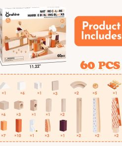Bloques de Carrera de Canicas de Madera para Niños de 3 años en adelante, 60 Piezas Juguete de Bloques de Construcción de Madera y Juego de Construcción, Juego de Laberinto de Canicas de Colores Naturales Juguetes Educativos STEM para Niños y Niñas (Conjunto de 60 piezas)