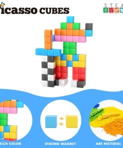El cubo de imanes PicassoTiles es un conjunto de bloques de construcción magnéticos que despiertan la creatividad en los niños. Con 108 piezas de cubos magnéticos de 1.2″ (3 centímetros), este juguete educativo ofrece una experiencia de juego única y educativa. Los conectores magnéticos de clic rápido permiten una construcción intuitiva y divertida, promoviendo el desarrollo de habilidades STEM como resolución de problemas, habilidades motoras finas, razonamiento espacial, lógica, coordinación mano-ojo y más.