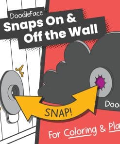 3. Colócalo y quítalo de la pared para colorear y jugar. Un lado del cierre permanece fijado a la pared con una tira adhesiva Command incluida o el hardware de tu elección. El otro lado del cierre está en la parte trasera del personaje de DoodleFace. Por lo general, DoodleFace se colorea en una mesa o en el suelo y luego se vuelve a colgar en la pared para mostrar la nueva obra de arte.