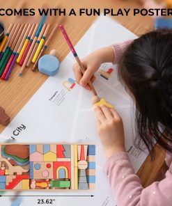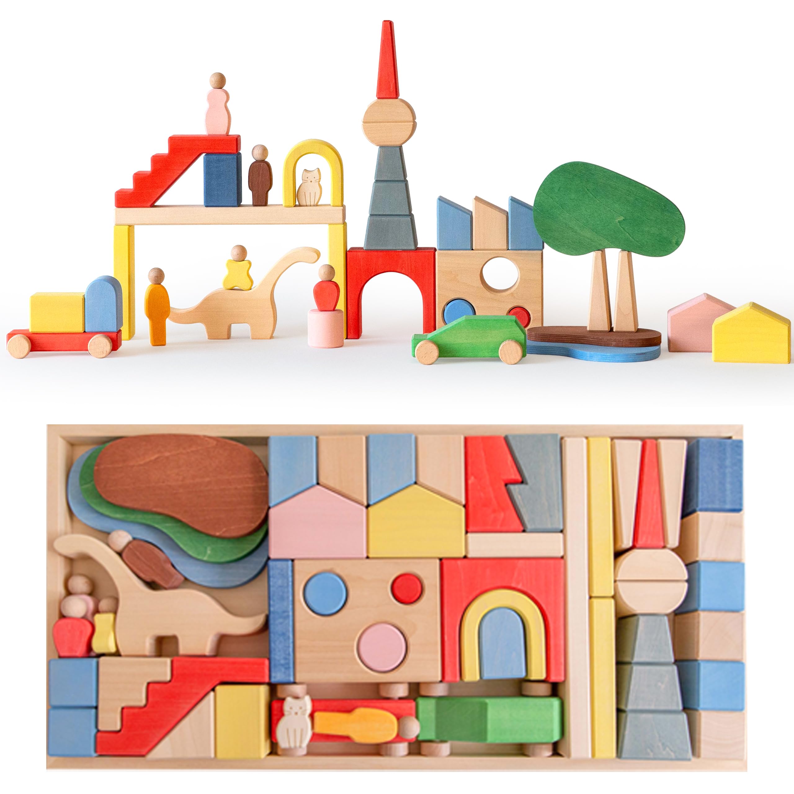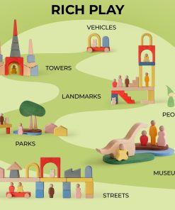 1. Estimula la curiosidad de los niños: El set de bloques Metrópolis ofrece una impresionante variedad de 52 bloques, acompañados por una bandeja de madera y carteles de juegos atractivos que sirven como lienzos para que los niños representen mapas y paisajes urbanos, fomentando discusiones imaginativas sobre la vida urbana. Los juguetes montessori también cuentan con calles, museos, torres, centros comerciales, figuras diversas y varios medios de transporte, permitiendo a los niños construir ciudades vibrantes llenas de elementos encantadores.