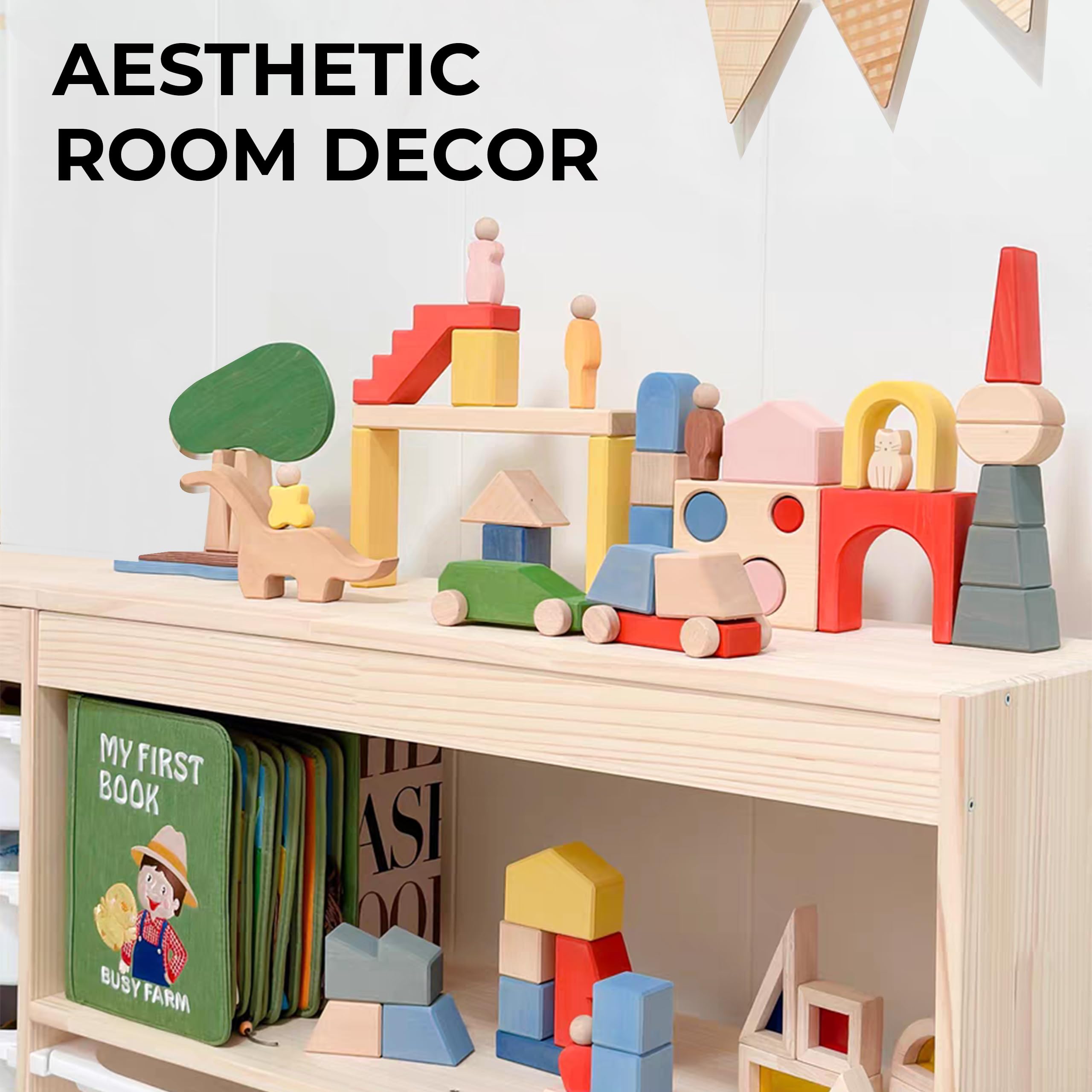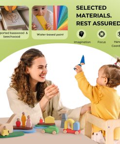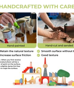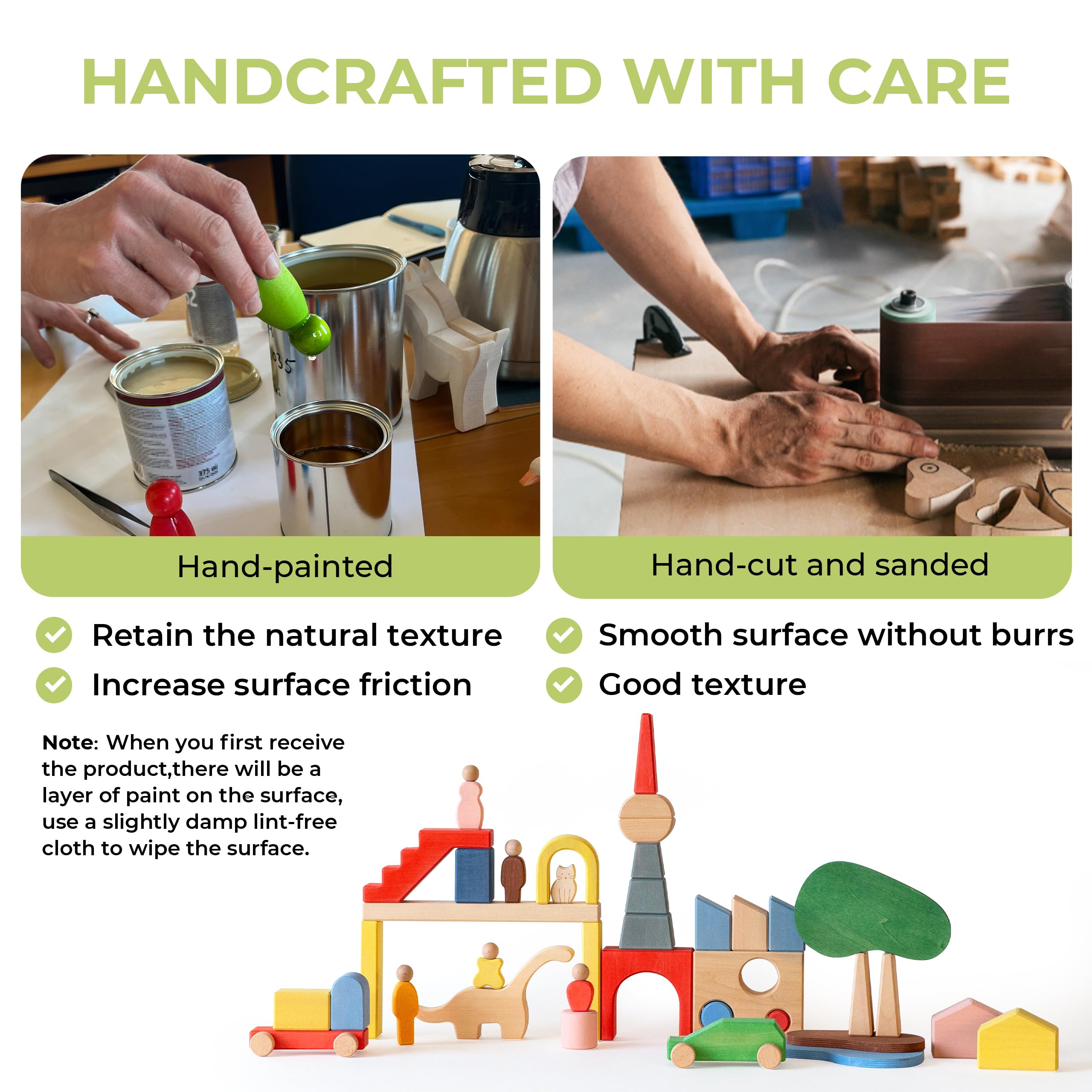 3. Seguridad y conciencia ambiental: Nuestros bloques de madera están coloreados con aceite de cera de madera natural a base de agua, libre de formaldehído y otras sustancias dañinas, garantizando la seguridad y tranquilidad de los niños durante el juego. Esta pintura ecológica no emite productos químicos nocivos, demostrando nuestro compromiso con la amabilidad ambiental al tiempo que se conserva la textura natural de la madera. Inicialmente, puede haber algo de color flotante al primer uso; simplemente límpielo con un paño húmedo.