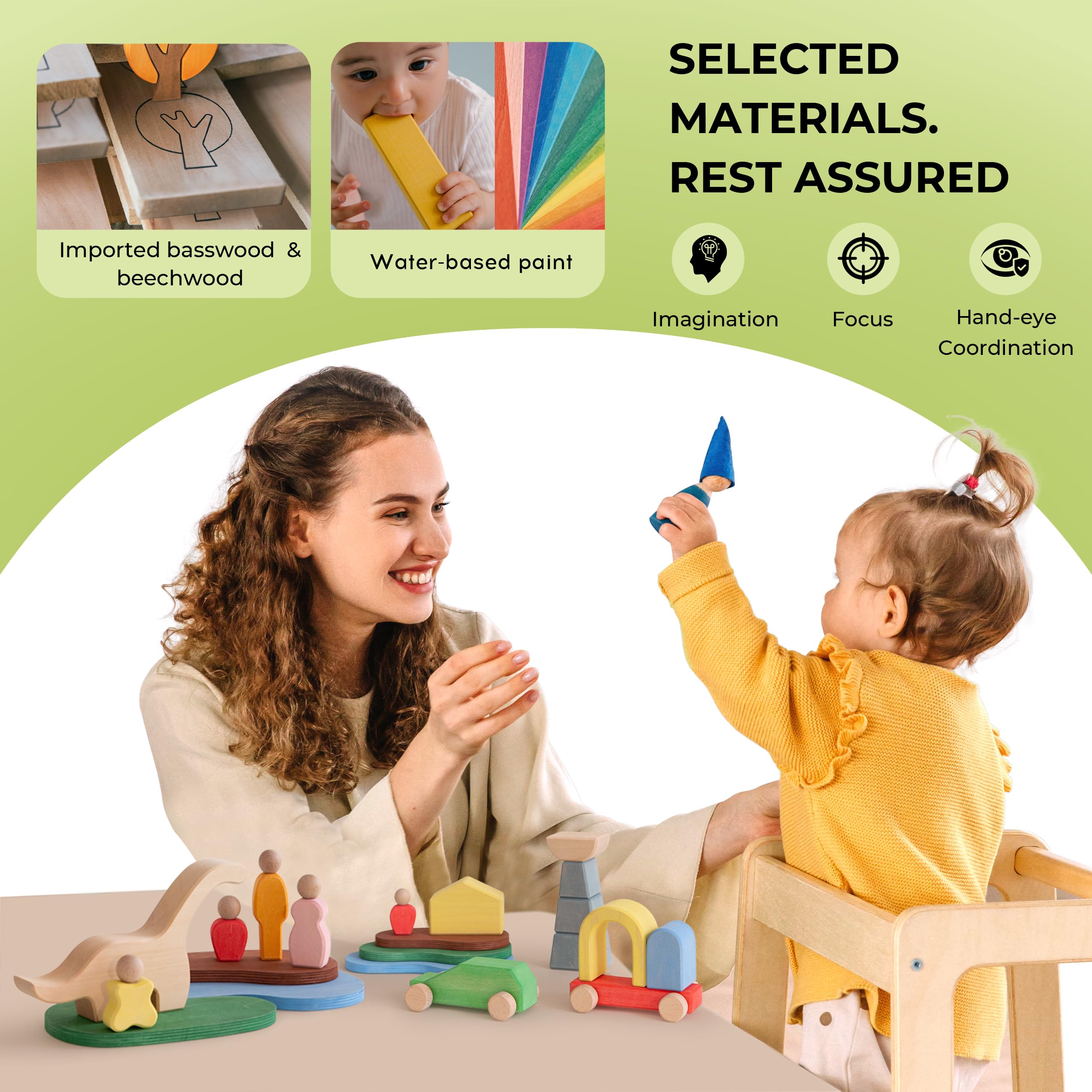 2. Estilo único y calidad heredada: En AVDAR, seleccionamos minuciosamente la mejor madera durante una época específica del año para garantizar materias primas de primera calidad. Los anillos anuales, texturas y nudos de los árboles representan los elementos estéticos más cautivadores, y nos enorgullecemos de preservar el atractivo natural de la madera, brindando a los niños una experiencia táctil auténtica. Como un artículo especial de calidad heredada, el set está lleno de tonos y formas únicas y encantadoras que simplemente no encontrarás en grandes almacenes.