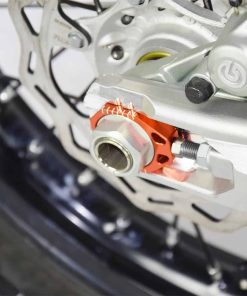 Bloques de Eje de Ajuste de Cadena SCAR Compatible con KTM EXC EXCF XCW XCFW XCFW TPI 85 105 125 150 200 250 300 350 450 500 02-23. Estos bloques de eje de ajuste de cadena son compatibles con una amplia gama de modelos KTM, desde el 85SX hasta el 500EXCF, incluyendo variantes como el 150EXC TPI y el 300EXC TPI. Fabricados mediante mecanizado CNC, garantizan una alineación precisa del eje y ofrecen posiciones de retroceso y avance para adaptarse a diferentes preferencias de conducción. Su diseño anodizado garantiza durabilidad y resistencia a la corrosión, con la garantía de haber sido probados en el Campeonato Mundial por pilotos profesionales de motocross.