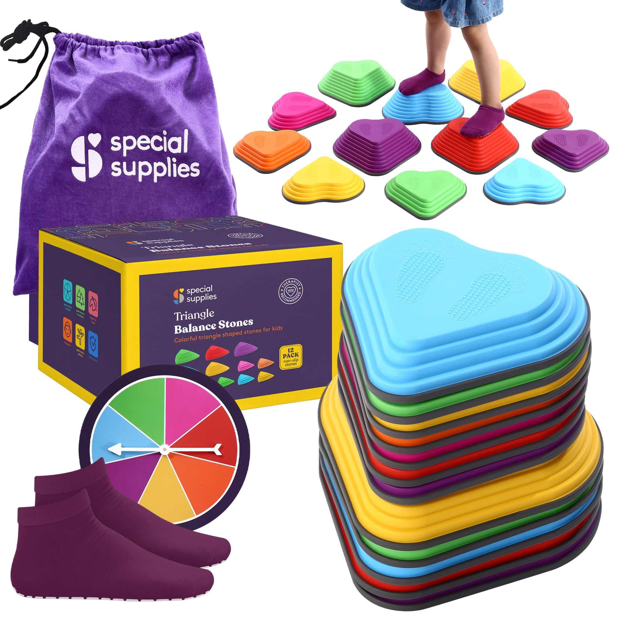 Inspira aventuras en tu pequeño hijo con bloques de equilibrio que promueven la actividad física, el equilibrio, la coordinación y el juego activo. Si tu hijo necesita una gran salida para ayudar a construir su confianza mientras fortalece el cuerpo, no hay nada más divertido y original que los bloques de equilibrio de goma Special Supplies que les permiten subir, trepar, saltar, brincar y practicar el movimiento con propósito y determinación. Una excelente manera de hacer que tu hijo esté activo, estos bloques de equilibrio de goma cuentan con un borde antideslizante para evitar que se deslicen y lastimen los dedos de los pies y los tobillos y vienen en varios tamaños que les permiten progresar en su habilidad de escalar. Estos bloques de equilibrio se pueden utilizar en variaciones ilimitadas y estilos de juego, permitiendo a tu hijo inventar tipos de juegos imaginativos como ‘no toques la lava’, escalada de montaña de aventura y mucho más. Detalles del producto: Bloques de equilibrio para interior y exterior. Divertido juego creativo para niños. Promueve la coordinación, el equilibrio y la fuerza. Varían en tamaño e inclinación. Fondo y borde de goma para evitar deslizamientos. Edades recomendadas: 6+. Soporta hasta 100 kg cada uno. Dale a tus hijos una forma divertida de gastar energía, mejorar la coordinación y el equilibrio, y buscar aventuras dentro y fuera de casa con los bloques de equilibrio de Special Supplies.