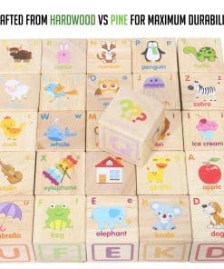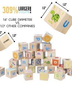 Presentamos los Bloques Apilables Educativos Montessori Mama para Niños de 1-3 años – la fusión perfecta de diversión, aprendizaje y calidad artesanal. Estos bloques grandes están diseñados no solo para entretener, sino también para proporcionar una experiencia educativa fundamental para su hijo. Fabricados con madera maciza, cada bloque de madera de 1.6″ de este set está construido para durar, capaz de resistir las exigencias del tiempo de juego mientras garantiza la seguridad de los más pequeños. El acabado suave y los bordes redondeados de cada cubo los hacen ideales para que los niños pequeños los manejen y exploren con facilidad. Nuestro set de Bloques ABC lleva el aprendizaje a un nivel superior. Con seis caras en cada bloque, su hijo descubrirá las letras mayúsculas y minúsculas, lo que les permite comprender el alfabeto en su totalidad. Estos bloques de letras van más allá del simple reconocimiento de letras; son una herramienta para promover habilidades tempranas de lectura y escritura. Pero el aprendizaje no se detiene ahí. Cada bloque de madera también presenta una variedad de formas, colores e imágenes bellamente ilustradas con nombres correspondientes. Esto no solo refuerza el reconocimiento de letras, sino que también presenta a los pequeños aprendices conceptos básicos de geometría y teoría del color. A medida que los niños apilan y organizan estos bloques para niños, desarrollan habilidades motoras finas cruciales y coordinación mano-ojo. Además, la incorporación de imágenes de objetos con nombres ayuda en la construcción de vocabulario y el desarrollo del lenguaje. Es una herramienta educativa integral que anima a los niños a explorar, aprender y crecer a través del juego. Estos bloques de alfabeto para niños de 2-4 años de Montessori Mama son más que un juguete; son una inversión en la educación temprana de su hijo. Empaquetados en materiales ecológicos, son un regalo maravilloso para cumpleaños, fiestas o simplemente como una nueva adición a los utensilios de aprendizaje de su hijo. Con la opción de envoltura de regalo y mensaje personalizado al momento del pago, puede agregar un toque especial a este regalo reflexivo. Acepta la alegría del aprendizaje con los Bloques de Alfabeto de Madera de Montessori Mama, donde cada sesión de juego es una oportunidad de crecimiento, descubrimiento y diversión.