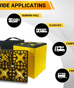 El juego de bloques de nivelación para RV ROBLOCK es la solución perfecta para nivelar y estabilizar su RV o remolque de viaje de campista. Con 10 bloques de nivelación amarillos y 2 TOP de goma incluidos, puede personalizar la altura de nivelación según sus necesidades. Estos bloques de nivelación duraderos están hechos de polipropileno con aditivos anti-UV para garantizar su resistencia y durabilidad en exteriores. Además, proporcionan un soporte estable para los gatos de RV y aseguran un equilibrio óptimo cuando se encuentra en su RV. Las instrucciones de uso sencillas permiten un montaje rápido y fácil, mientras que el cordón de almacenamiento facilita su embalaje y transporte. Disfrute de una experiencia de acampada sin preocupaciones con los bloques de nivelación para RV ROBLOCK.
