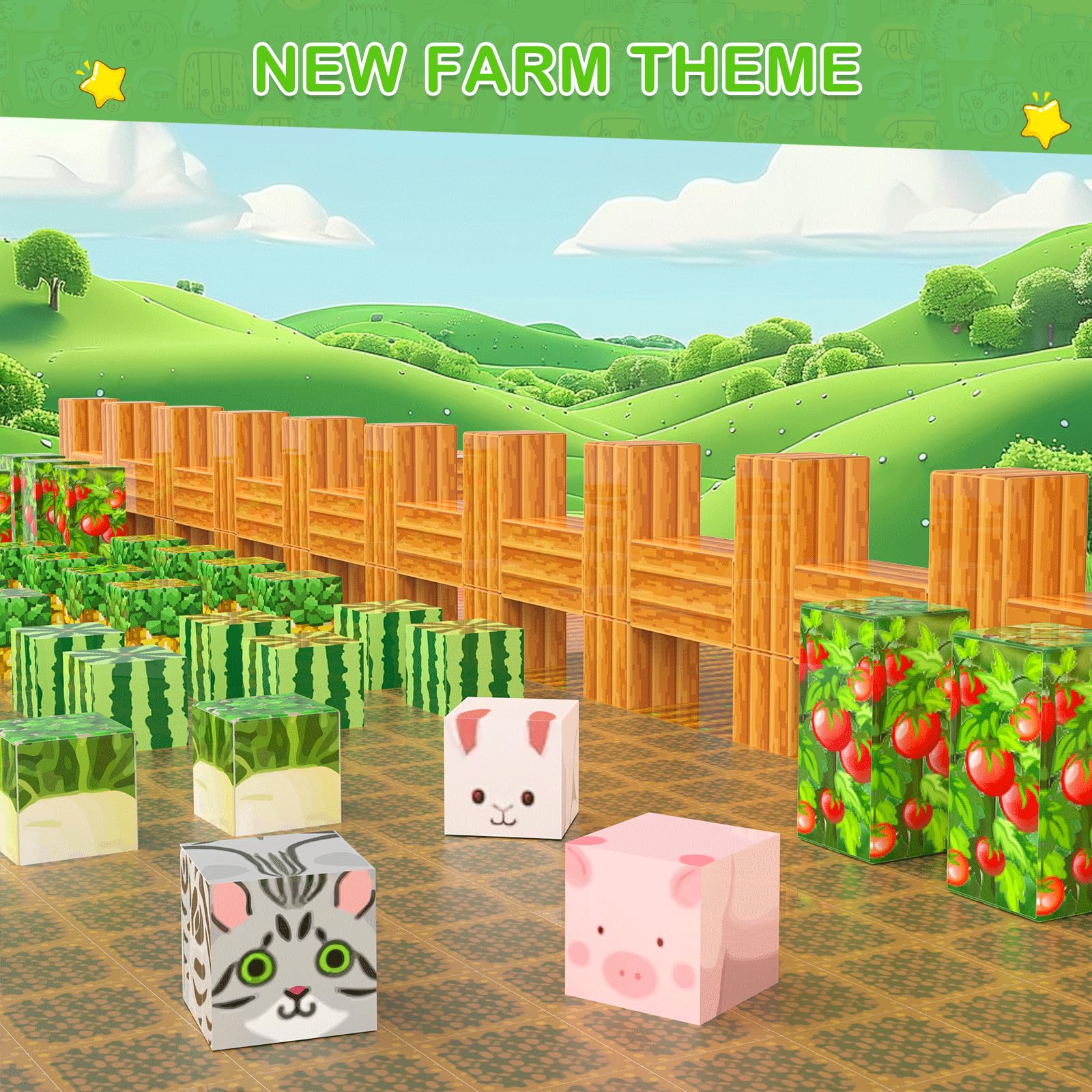 1. CONSTRUYE UN NUEVO MUNDO MAGNÉTICO DEL TEMA DE LA GRANJA: El nuevo juego de construcción temático de la granja incluye más de una docena de bloques magnéticos destacados como zanahorias, tomates, sandías, espigas de trigo, rábanos, etc. así como módulos de animales como vacas, perros, gallinas, conejos, gatos y cerdos. Con diseños de impresión únicos y realistas en juguetes magnéticos. Los niños pueden usar su imaginación ilimitada mezclando y combinando más juegos de construcción. Haciéndote sentir como si estuvieras realmente en una granja real.