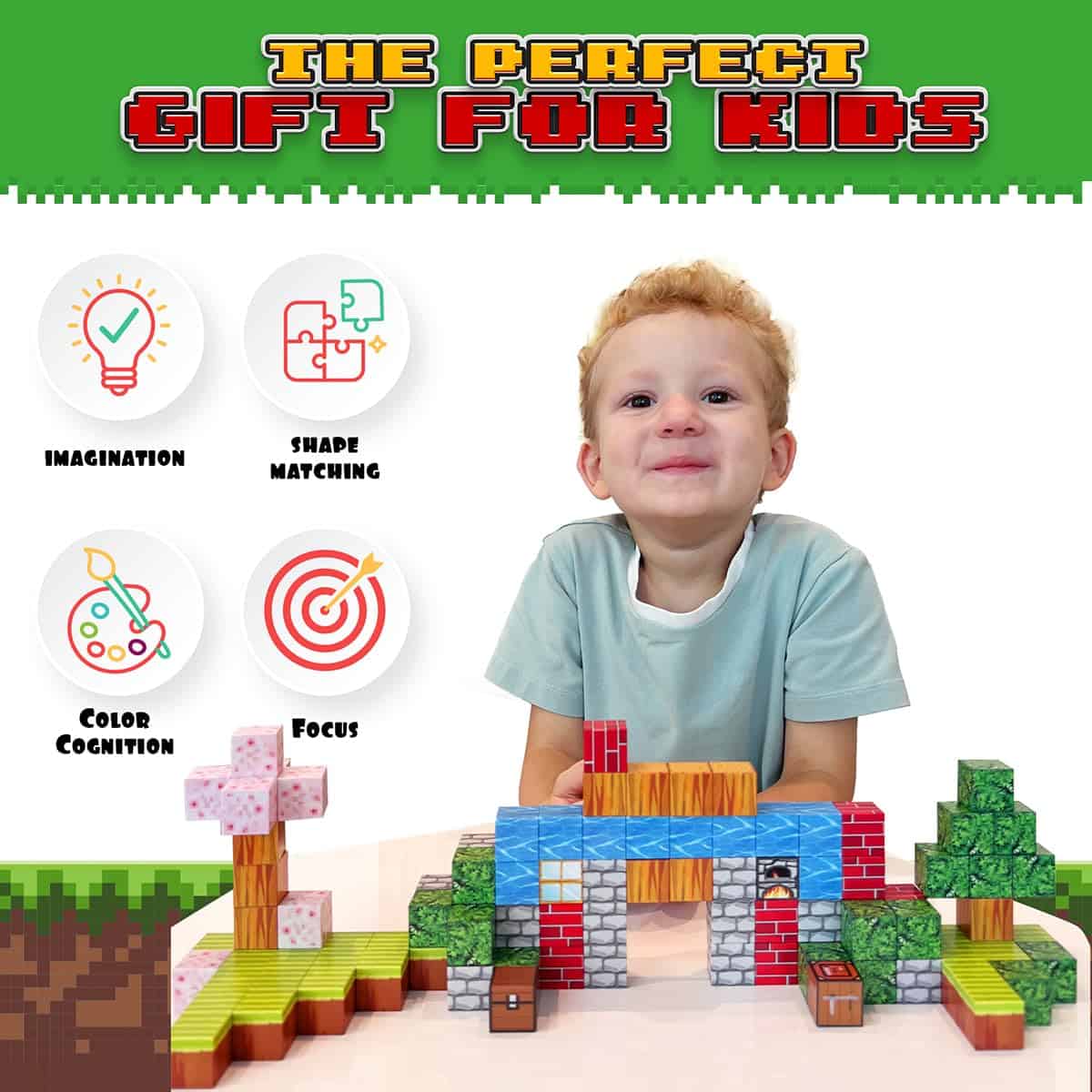2. Bloques de Construcción Magnéticos Educativos: Los niños aprenderán a construir su propio mundo mágico magnético con estos bloques de Mine Craft. Los bloques magnéticos para niños abren un mundo mágico de posibilidades, desde construcciones simples hasta desafiantes, permitiendo que la imaginación de tu hijo vuele.