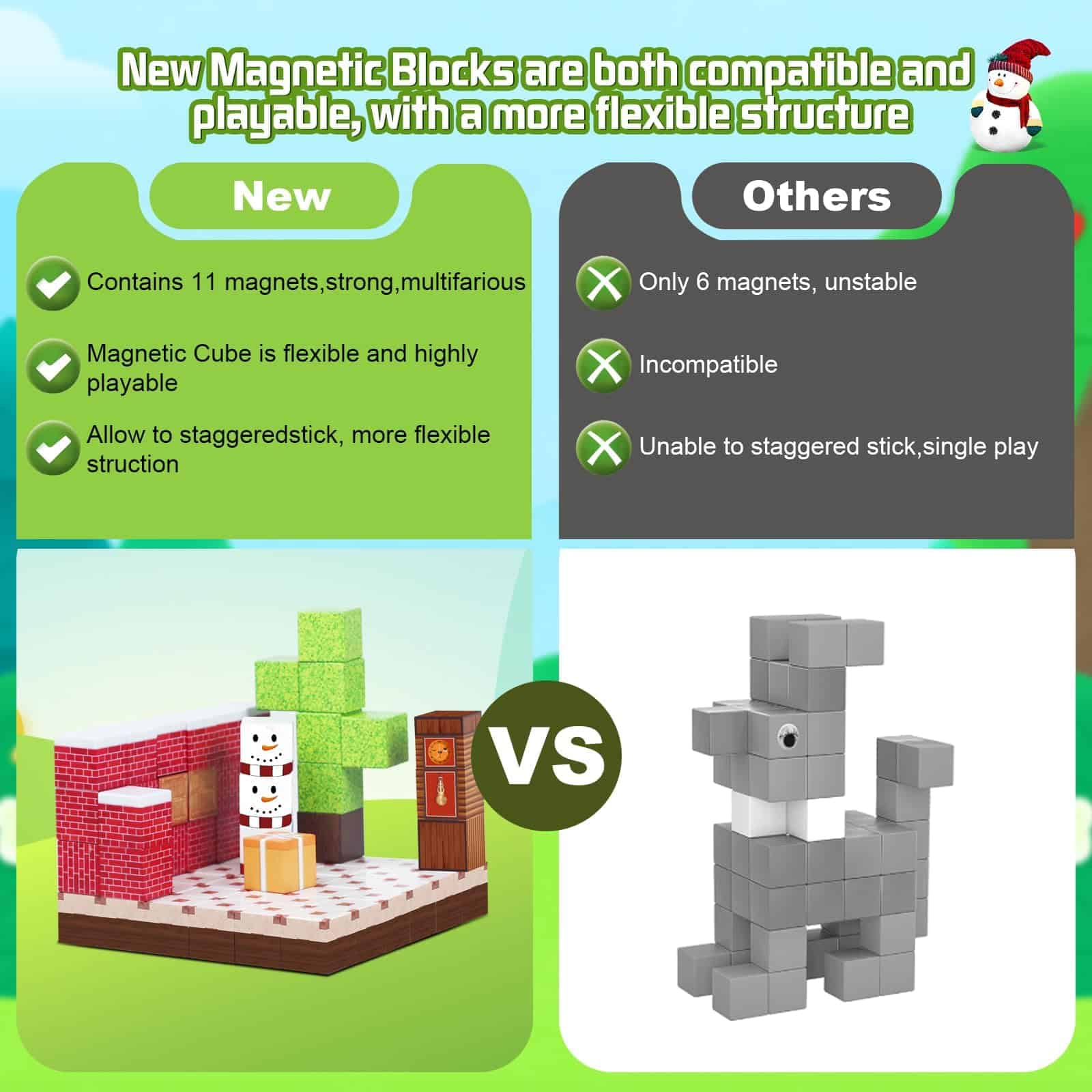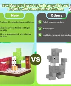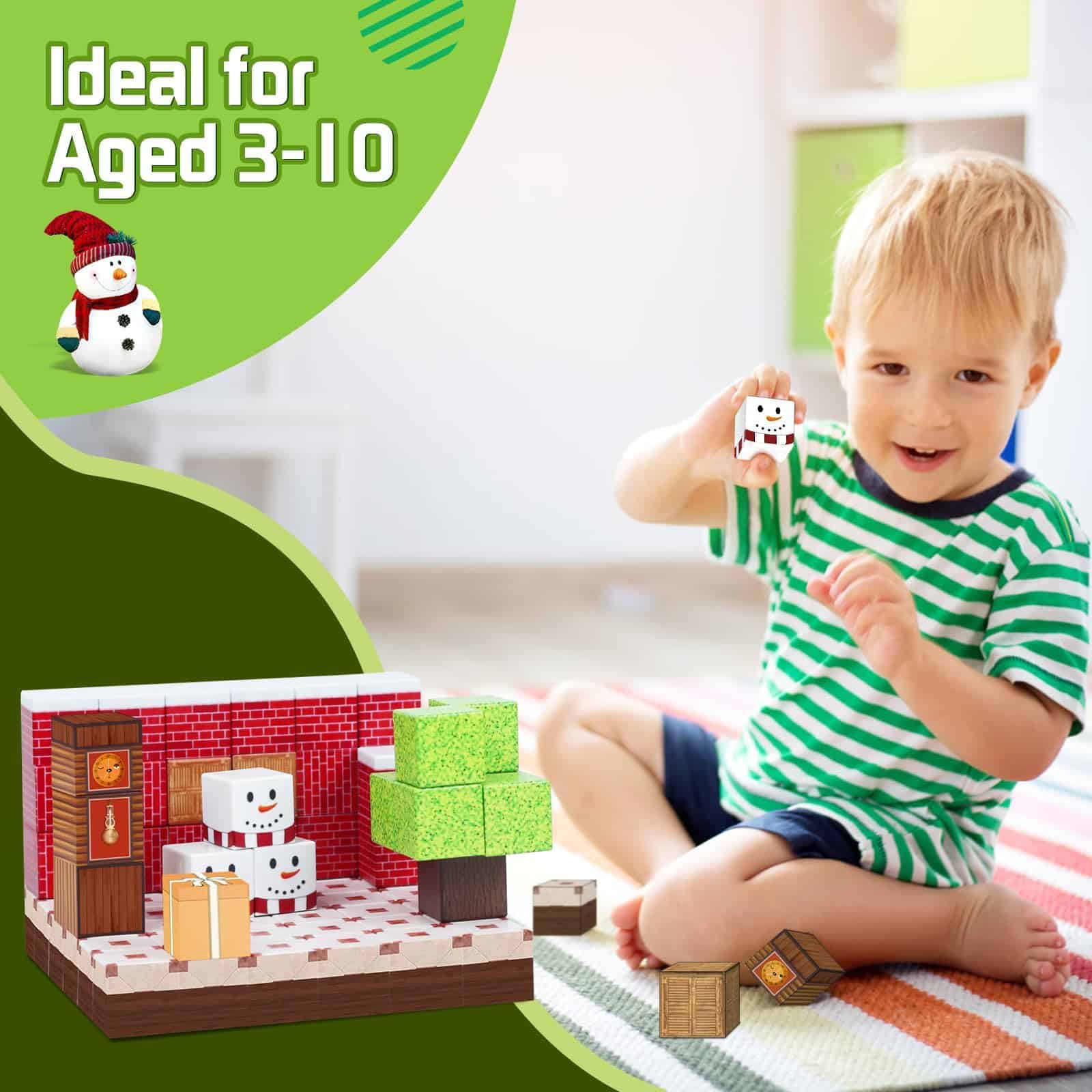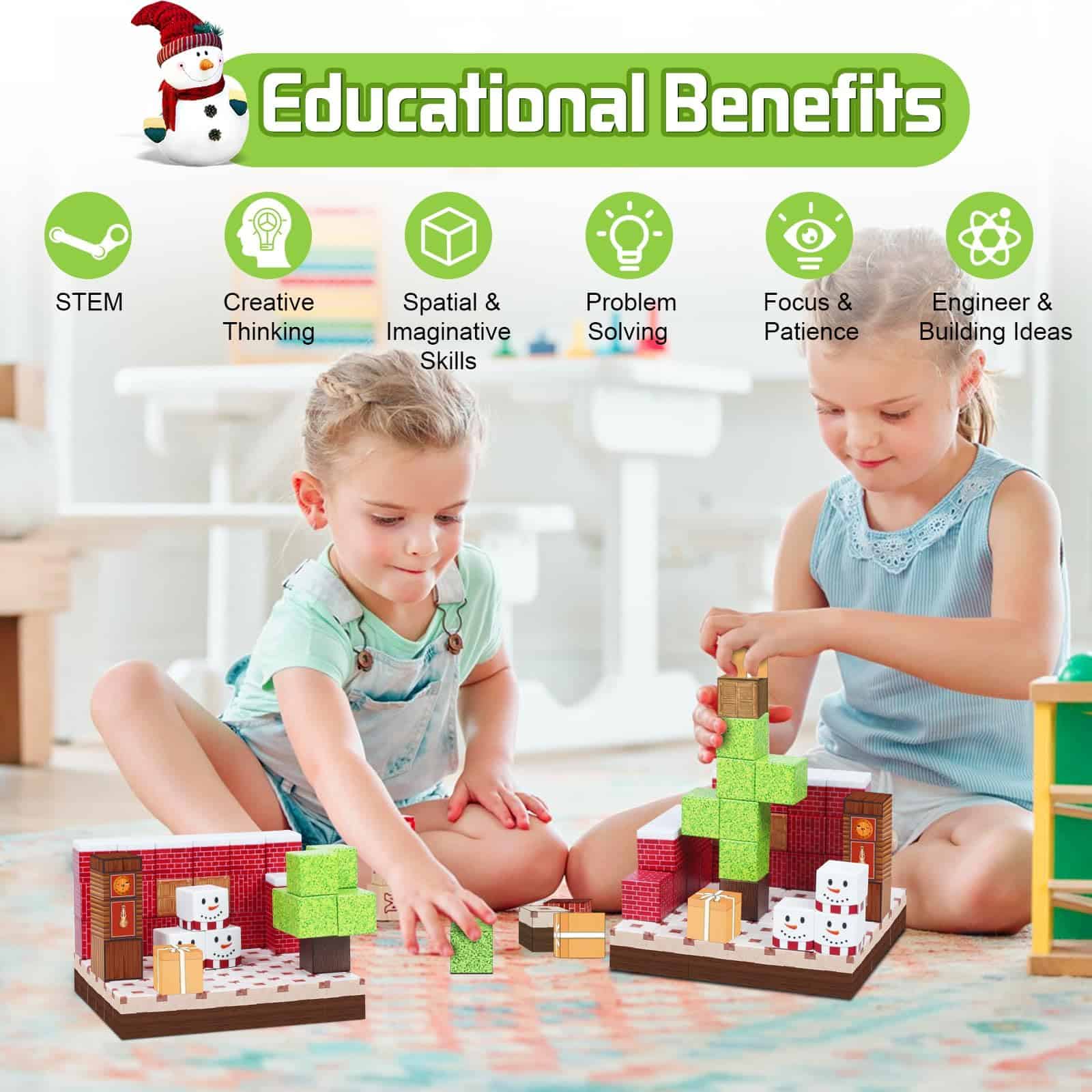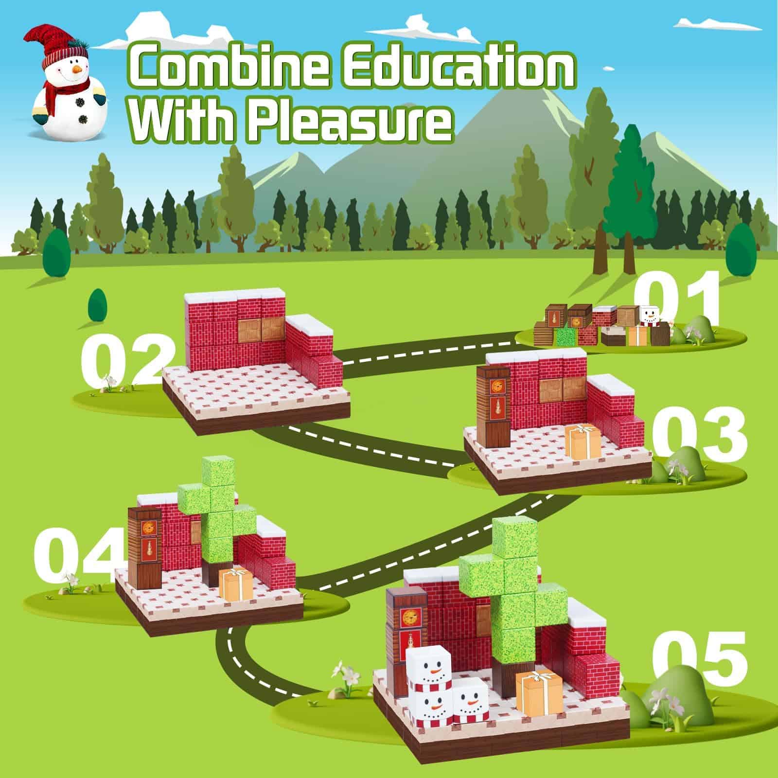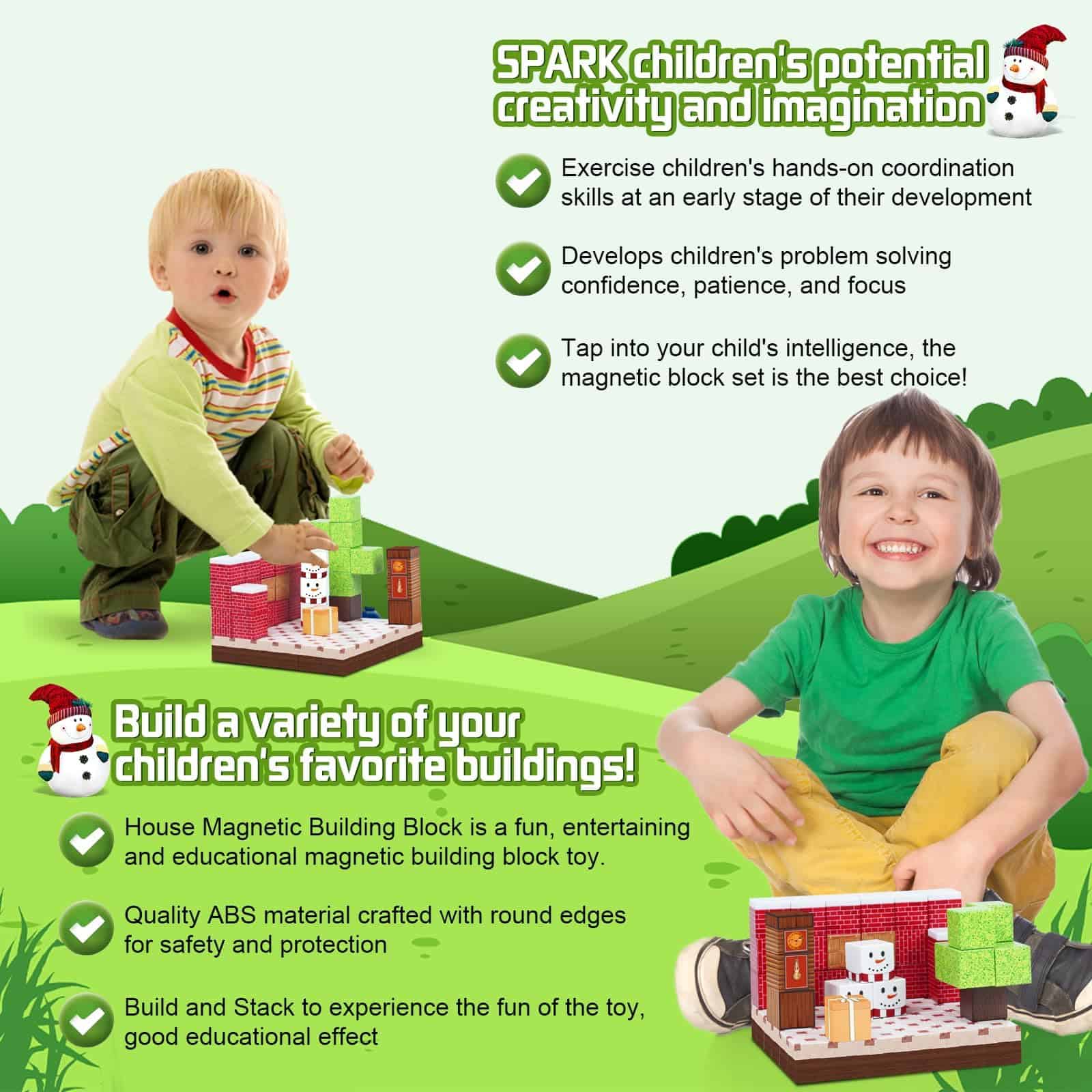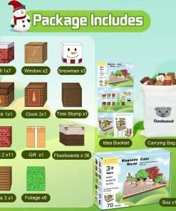 El set de bloques magnéticos temáticos de Navidad incluye una casa, reloj colgante, árbol y muñeco de nieve, ofreciendo posibilidades infinitas para construir y crear. Está hecho de material ABS de alta calidad, seguro y no tóxico para el juego de los niños. Los bloques magnéticos mejoran la firmeza de las construcciones y evitan lastimar las manitas con sus bordes redondeados. Combina impresiones coloridas con bloques magnéticos, estimulando la creatividad y habilidad práctica de los niños. Ideal para desarrollar pensar creativo, concentración, paciencia, capacidad de cooperación, y habilidades de manos en la obra. Fomenta la creatividad, trabajo en equipo, y permite a los niños desarrollar un sentido de color, arte, números, diseño arquitectónico 3D e ingeniería estructural. Adecuado para niños de 3 años en adelante, perfecto como regalo educativo para todas las edades.