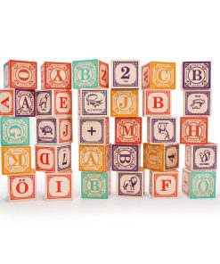 Expande tu conocimiento de Suecia y del idioma sueco con este set de 30 bloques. Disfruta de los elementos de diseño sueco en relieve que rodean dos letras en cada bloque. En dos lados más se revela un número y un animal acompañado de sus traducciones al sueco. Dos letras mayúsculas adicionales completan cuatro alfabetos en este set hecho a mano.