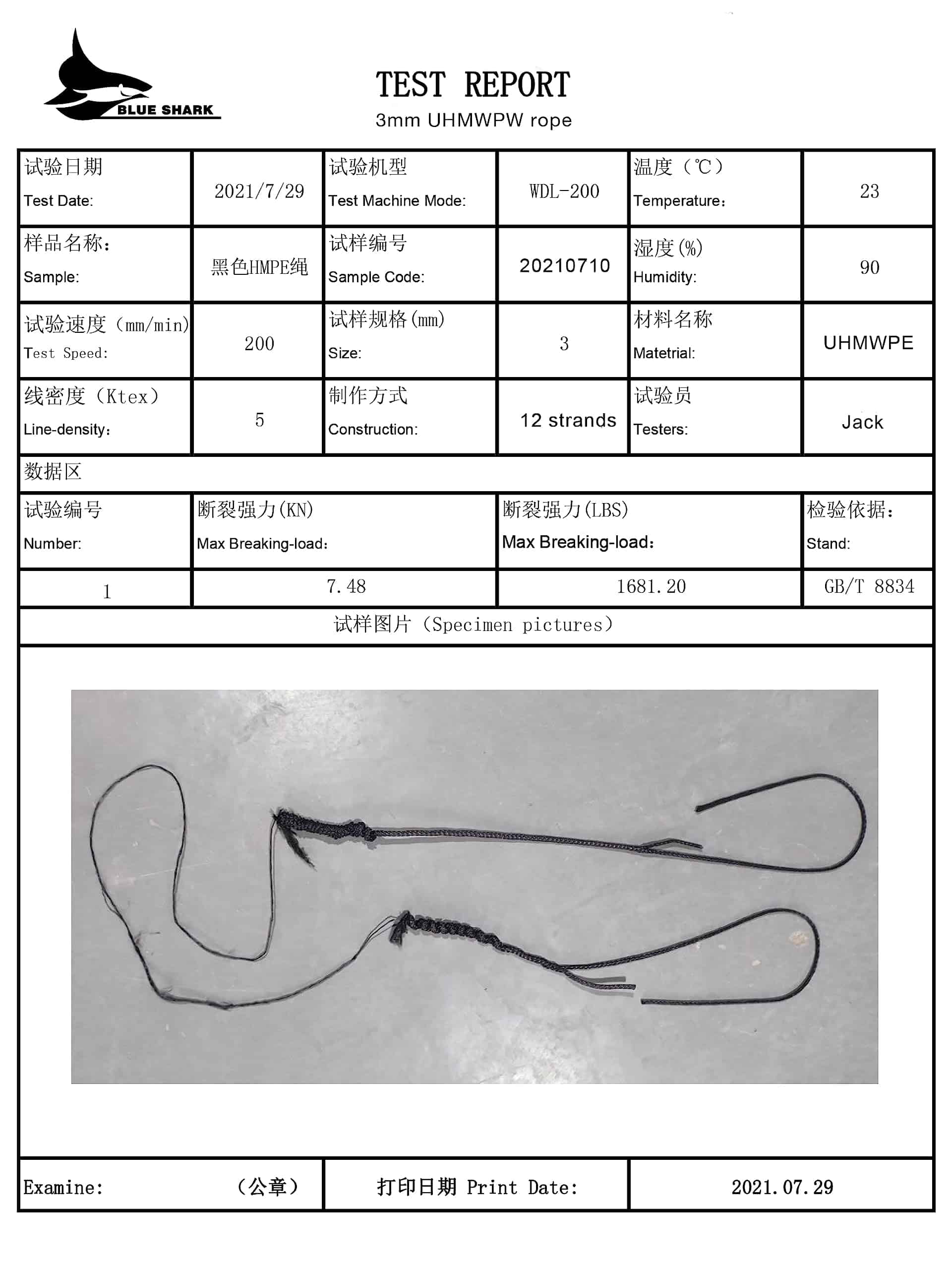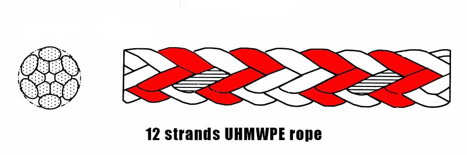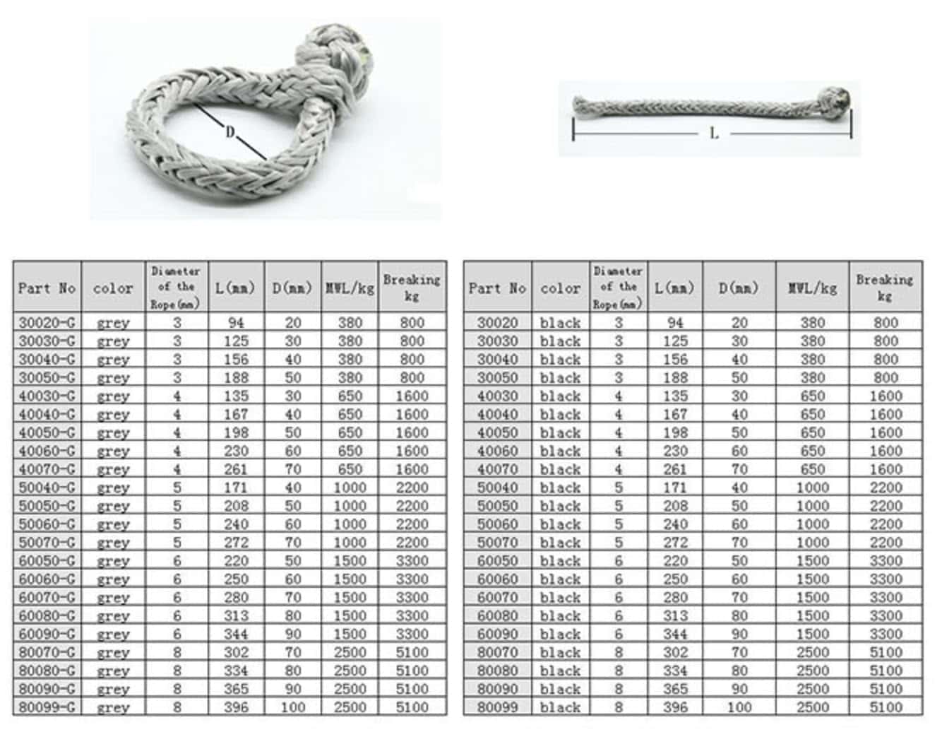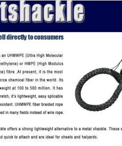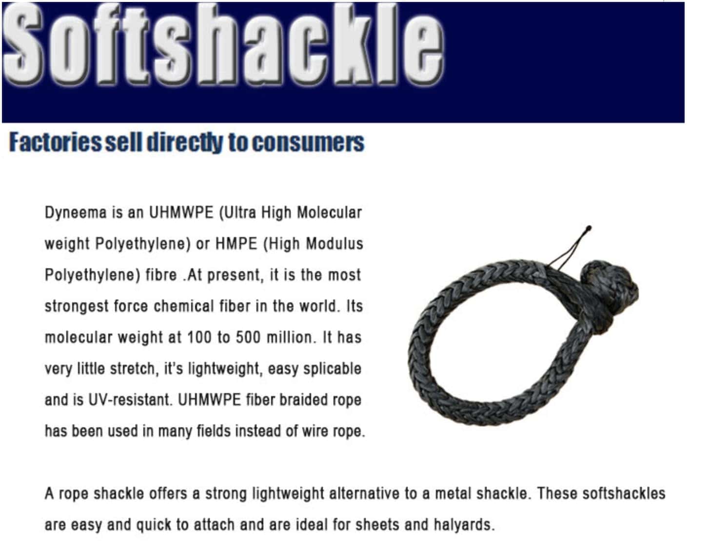Conector Suave de Cuerda Dyneema(UHMWPE) Hecho de Dyneema, un polietileno de ultra alto peso molecular (UHMWPE). Es la fibra química más fuerte del mundo. Su peso molecular es de 100 a 500 millones. Tiene muy poca elasticidad, es ligero, fácil de cortar y resistente a los rayos UV.