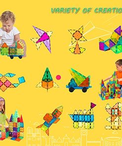 Ideal Juego de Bloques de Construcción Magnéticos: Este conjunto de bloques de construcción magnéticos 3D contiene un total de 100 piezas, incluyendo diferentes formas geométricas y dos coches. Los niños pueden construir lo que quieran sin limitaciones y divertirse más. Este conjunto de bloques magnéticos es un gran regalo para niños de 3, 4, 5 y 6 años. Aprender Jugando: Jugar es la mejor manera para que los niños aprendan. Los azulejos magnéticos como juguetes Montessori podrían ayudar a los niños a adquirir una comprensión básica de formas geométricas, colores y números mientras juegan. Los niños pueden liberar su imaginación y creatividad, mejorar su inteligencia espacial y habilidades motoras finas, fomentar su habilidad de cooperación mano-ojo a través de la construcción y la creación. ¡Sus hijos le mostrarán infinitas posibilidades! Calidad Avanzada: Estos juguetes de bloques de construcción magnéticos STEM están hechos de plástico ABS duradero que no se rompe fácilmente mientras se juega. Se adopta un diseño de bordes redondeados para proteger las manitas de su hijo. Imanes más fuertes y grandes que otras marcas no solo facilitan a los niños apilar y construir, sino que también aseguran que nuestros azulejos magnéticos sean compatibles con otras marcas. Unión a través del juego: Jugar con bloques de construcción magnéticos apilables es una buena elección para pasar momentos felices con sus seres queridos. Si su hijo está aburrido, simplemente saque nuestros bloques de construcción magnéticos y disfrute de un gran momento con su hijo. Si el amigo de sus hijos viene a jugar a casa, también puede sacar los bloques de construcción y dejar que sientan juntos el sentido de logro. Cuando usted tiene los bloques magnéticos, tiene felicidad. El Regalo Perfecto: Los bloques de construcción magnéticos son adecuados para cualquier festividad y ocasión, como cumpleaños, Navidad, Pascua, preescolar, centro de cuidado diurno, etc. Los azulejos magnéticos vienen empaquetados en una caja bellamente diseñada que parece una caja de regalo. ¡Los niños definitivamente se enamorarán de nuestros bloques de construcción magnéticos!