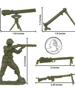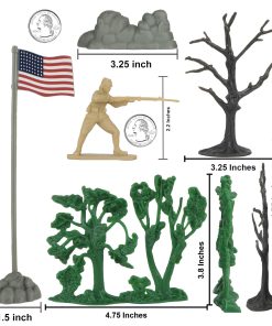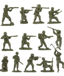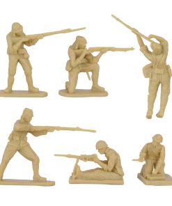 Instrucciones: Con supervisión de un adulto, sumerja cualquier parte doblada en agua caliente, luego en agua fría para enderezar. Se requiere algo de ensamblaje sencillo. Estas figuras en miniatura son una adición perfecta a cualquier set de juego de la Segunda Guerra Mundial en el Teatro del Pacífico o proyecto escolar de diorama. Empaquetado en una caja a color completa con la historia de la batalla. Recomendado para edades de 5 años en adelante
