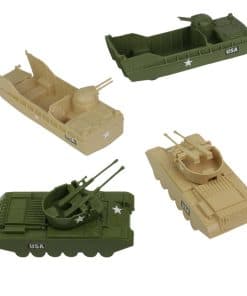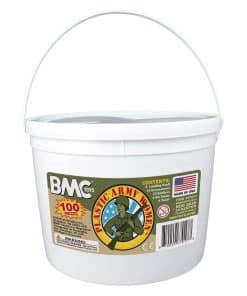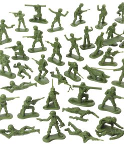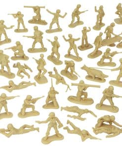 Conjunto de 100 figuras de plástico de Mujeres del Ejército de BMC Toys. Los equipos Tan y Verde Oliva incluyen 34 figuras de Mujeres del Ejército de plástico cada uno, Perro de Trabajo Militar, camilla, tanque antiaéreo, barca de desembarco y 10 accesorios. Las soldados femeninas tienen poses clásicas de combate y están estilizadas según los mejores ‘Little Green Army Men’ del siglo XX en 22 poses diferentes. Poses que incluyen Capitana Pathfinder, Fusilero de Pie, Fusilero Arrodillado, Fusilero Prono, Francotirador Prono, Granadero, Operador de Bazoka, Fusileros Corriendo, Avanzando con Bayoneta, Médico de Combate, Arrastrandose Bajo, Operador de Radio, Soldado Herido, Ametrallador Ligero, Enfermera, Sanitario, Perro de Trabajo Militar, Manejador de MWD y accesorio de camilla. Las tropas tienen una altura de hasta 2.1 pulgadas y aproximadamente escala 1:32. Hechas de plástico LDPE ligeramente flexible. Los accesorios incluyen 3 Tiendas de Campaña, Cubos de Basura en Plataforma y una amplia variedad de armamentos. Las escalas de los vehículos y accesorios varían de 1:72 a 1:24. Este es un conjunto de juguetes fabricados en América real, pensados para ser montados, derribados, recogidos y jugados durante años. Empacado en un resistente cubo de almacenamiento reutilizable y recomendado para edades de 5 años en adelante.