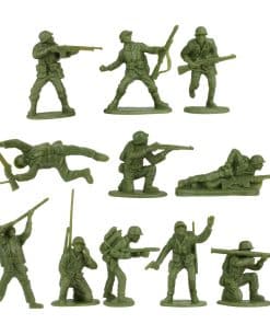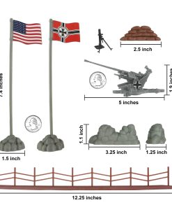 Todas las piezas son aproximadamente a escala 1:32 y están hechas de plástico de polipropileno bastante rígido y muy resistente, con detalles medios y muy poco exceso de material. Las figuras tienen una altura de hasta 2.45 pulgadas. El búnker mide 13 x 9 x 3.75 pulgadas de altura. El cañón antiaéreo mide 5.75 pulgadas de largo.