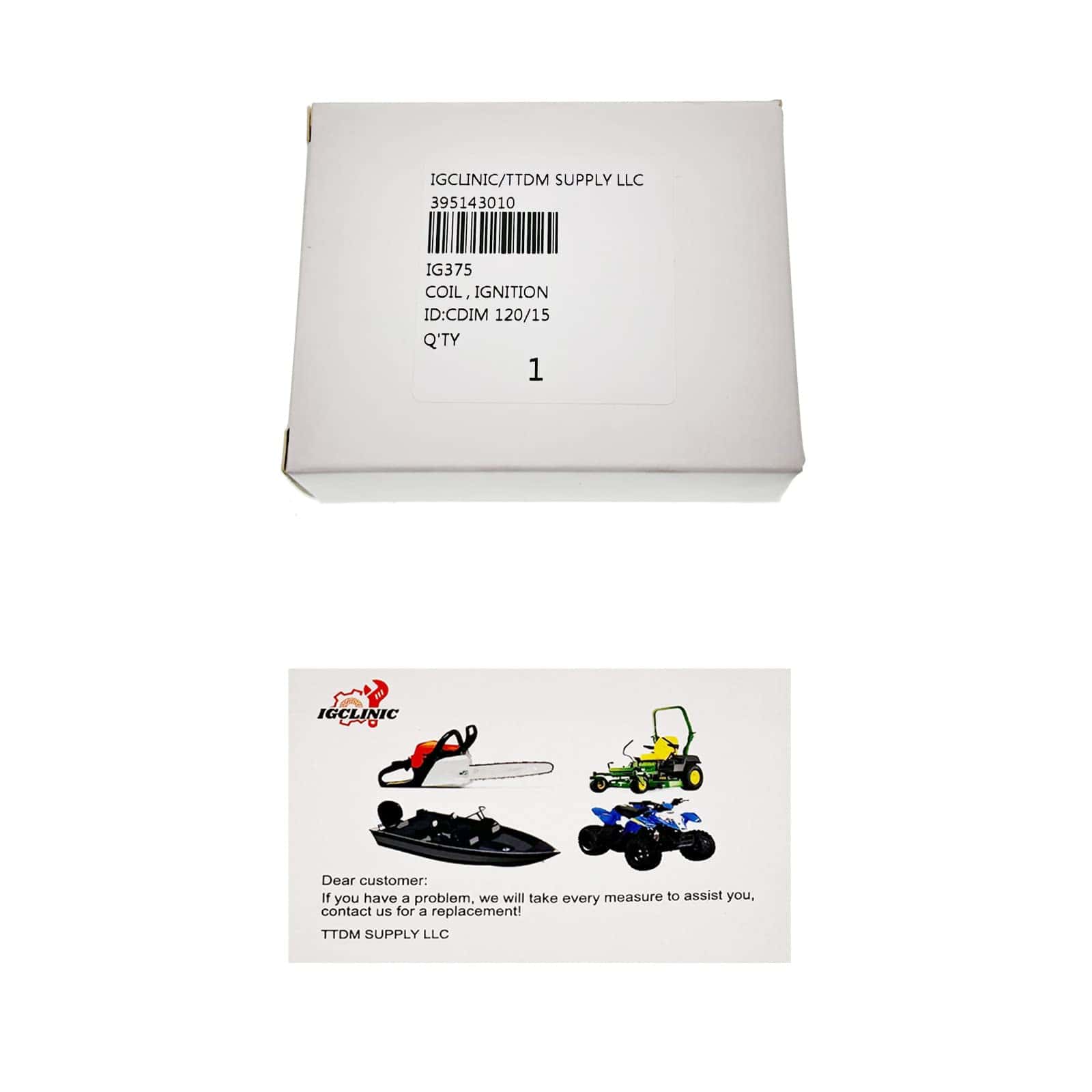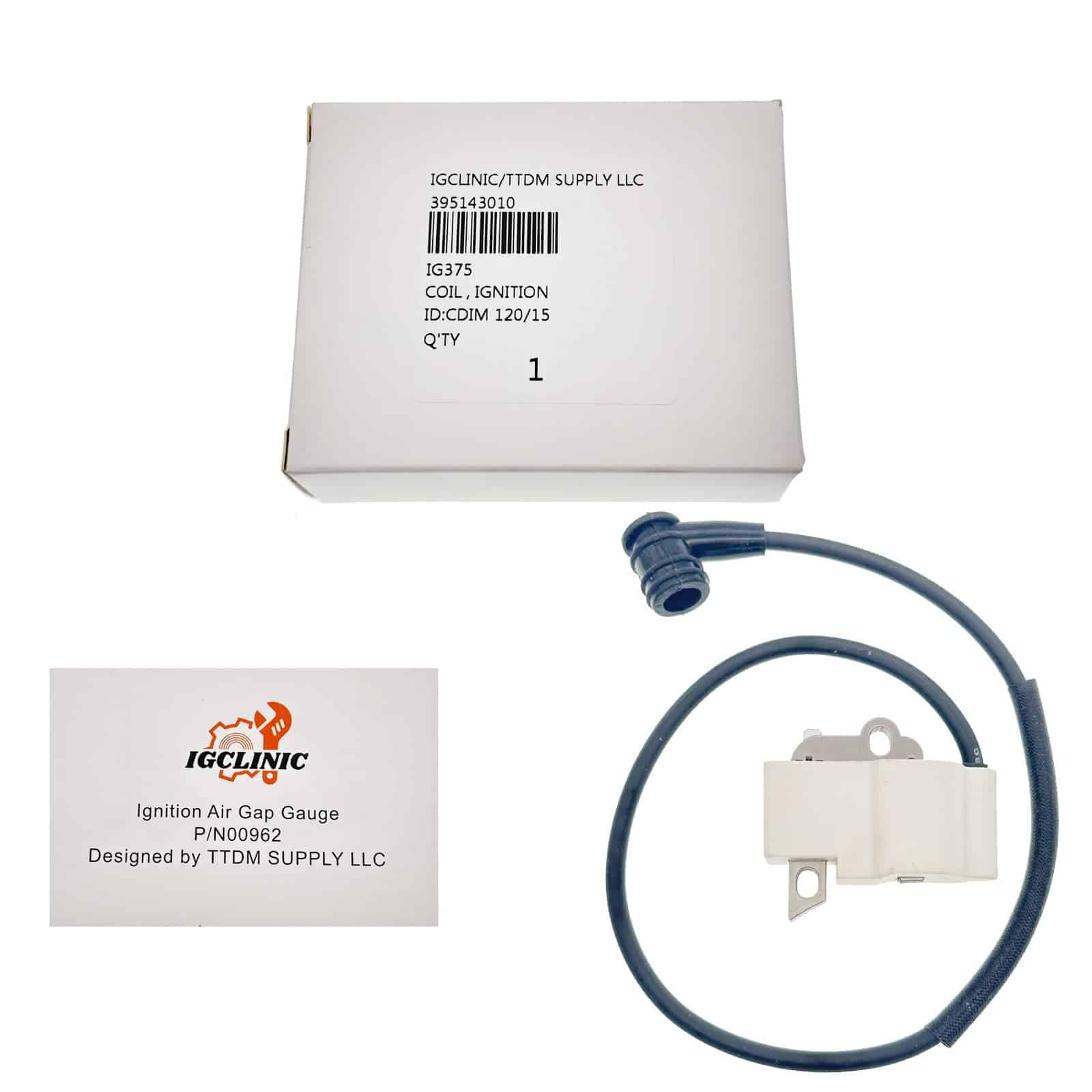 Bobina de encendido blanca IGCLINIC #395143010 (ID#CDIM 120/15) para Dolmar PC-7412 PC-7414 PC-8216 Makita EK7300 EK8100. Características: Fácil de instalar, fiable y estable. Incluye: 1 x bobina de encendido, 1 x calibrador de espacio de aire. Garantía de 90 días. Nota: El número de modelo es solo de referencia, por favor, verifique cuidadosamente la apariencia del producto y su número de parte original. Medición manual, por favor, permita un pequeño margen de error.