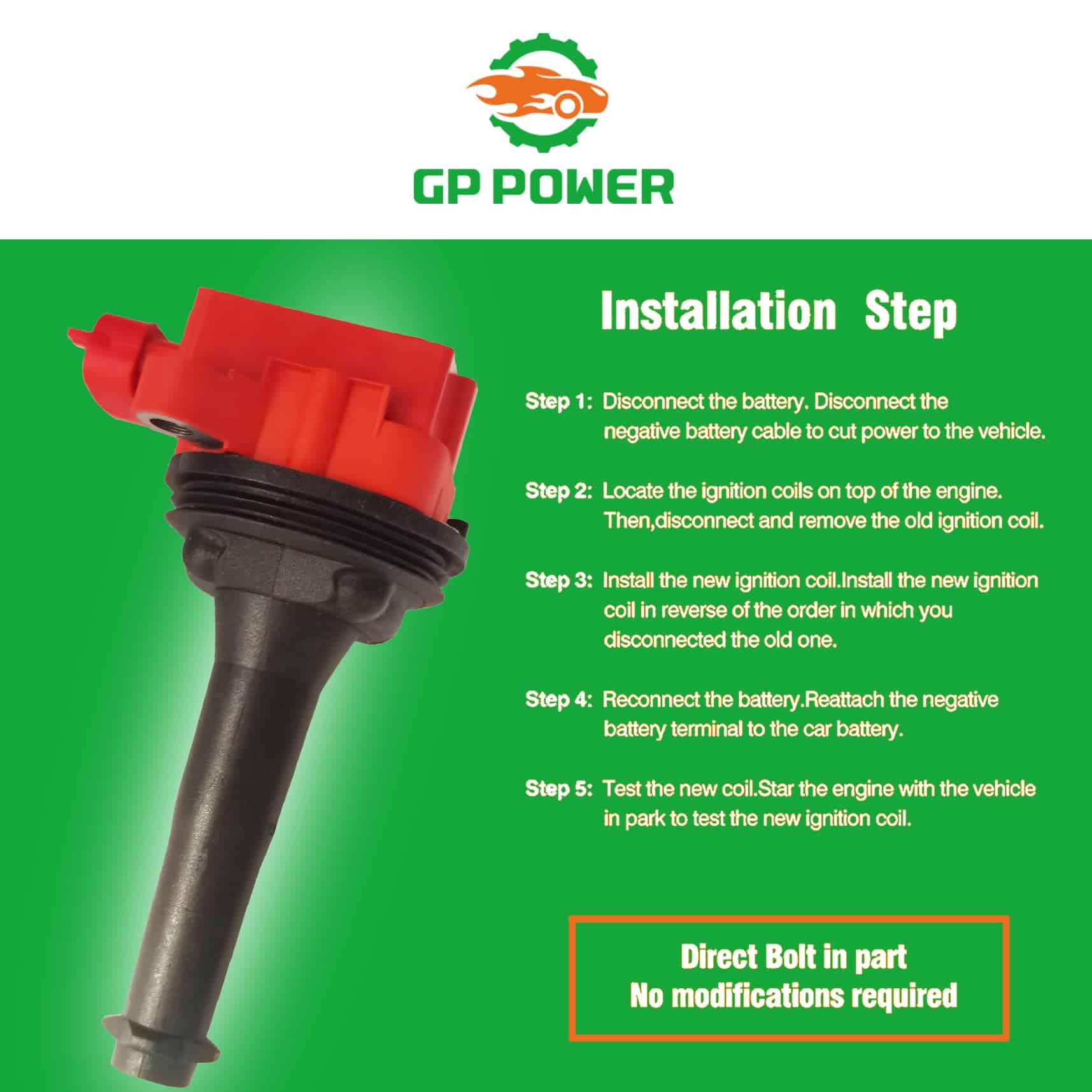 GP POWER utiliza la última tecnología y componentes OE para brindar una calidad excepcional que supera los requisitos OE. Nuestros paquetes de bobinas de encendido se pueden encontrar fácilmente en ambos lados del motor dentro del compartimento del motor, y se pueden instalar en minutos. Podrá experimentar arranques de motor más consistentes y suaves de inmediato.