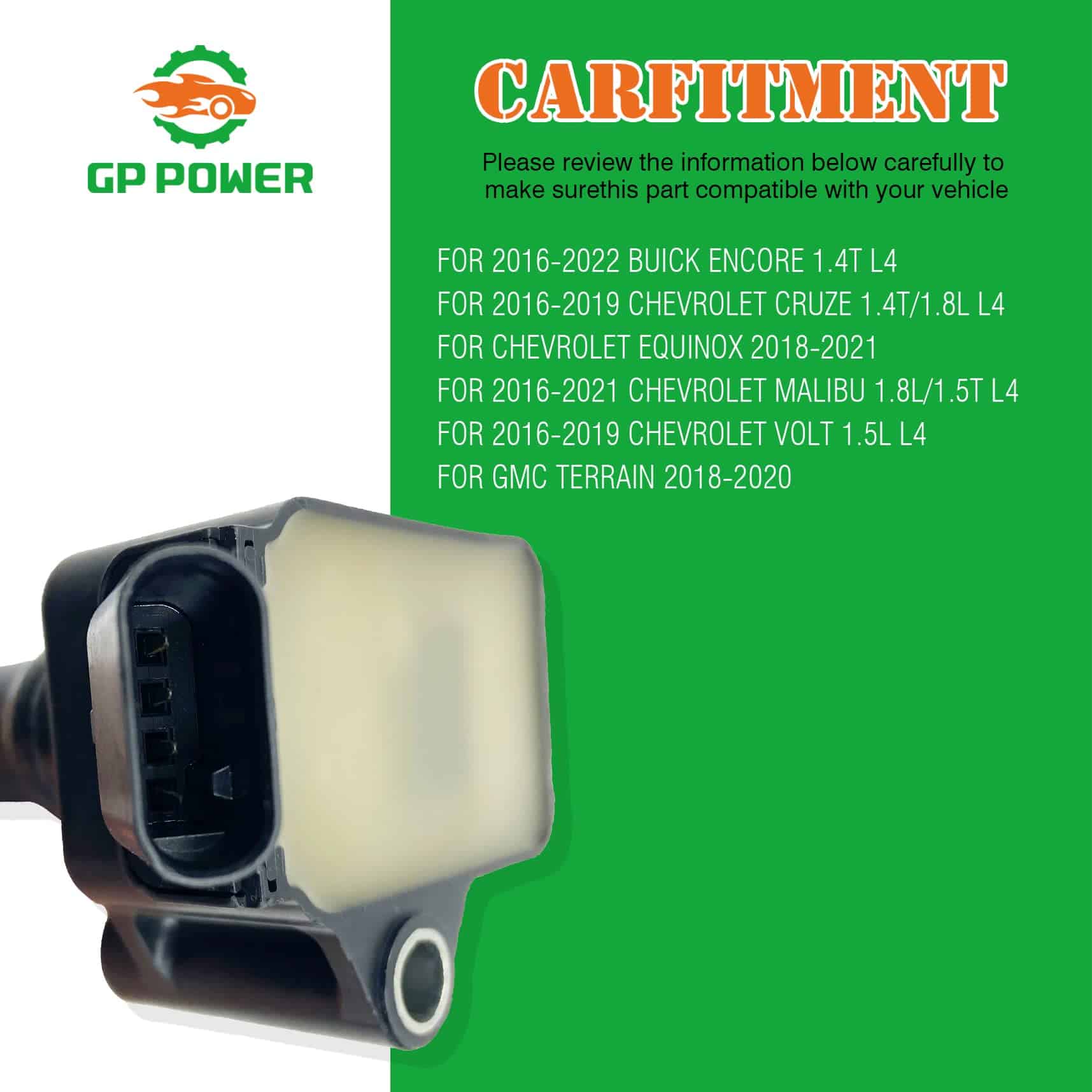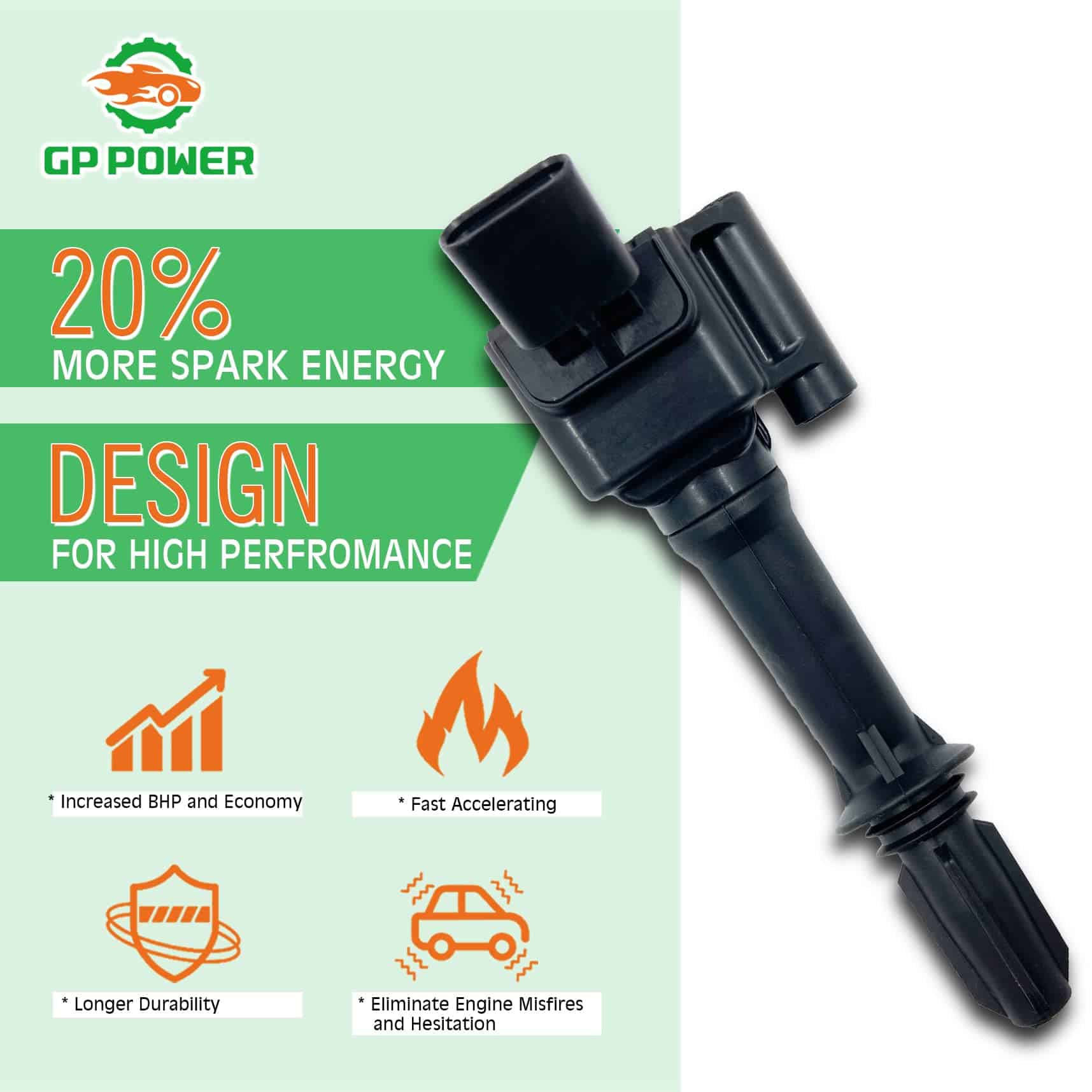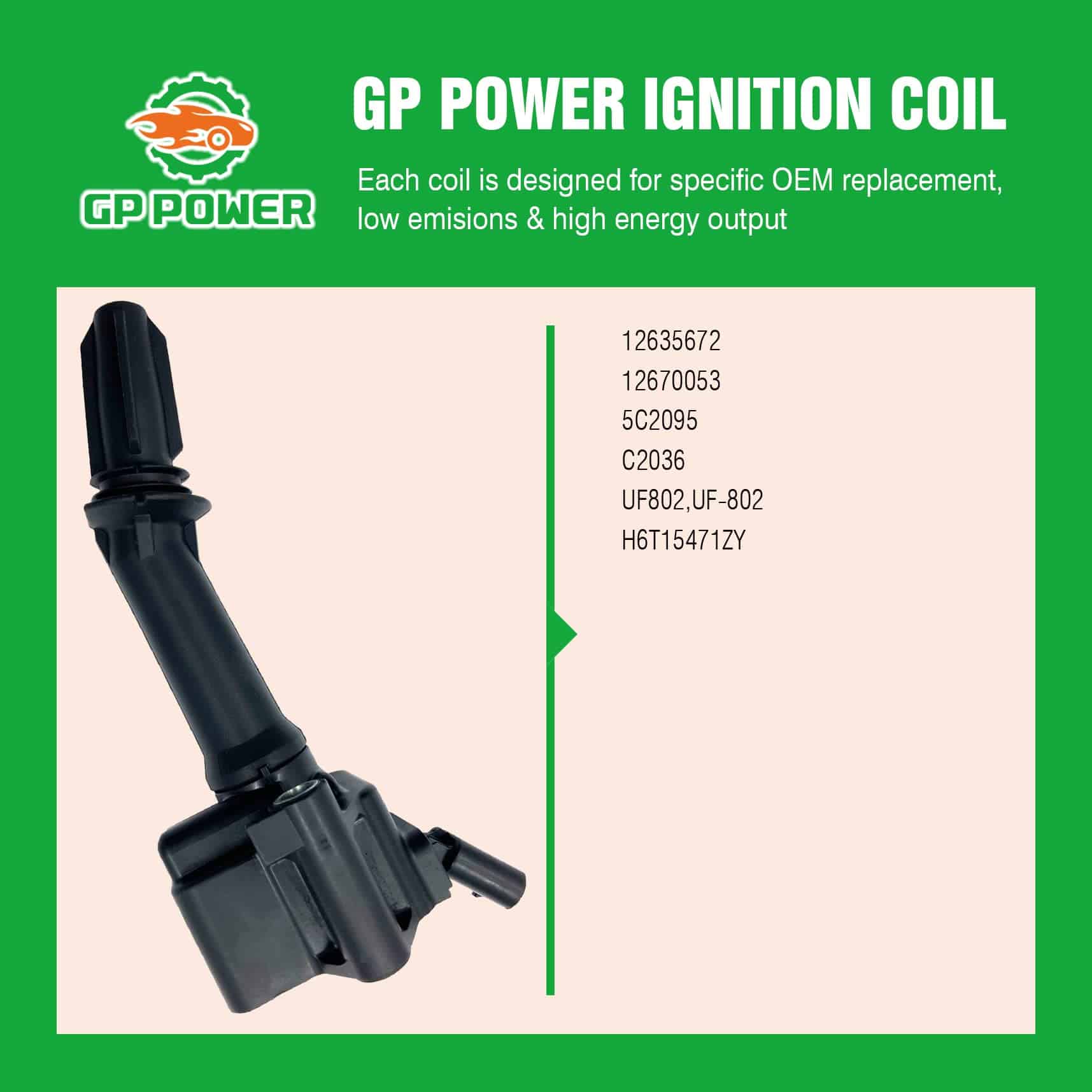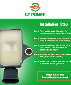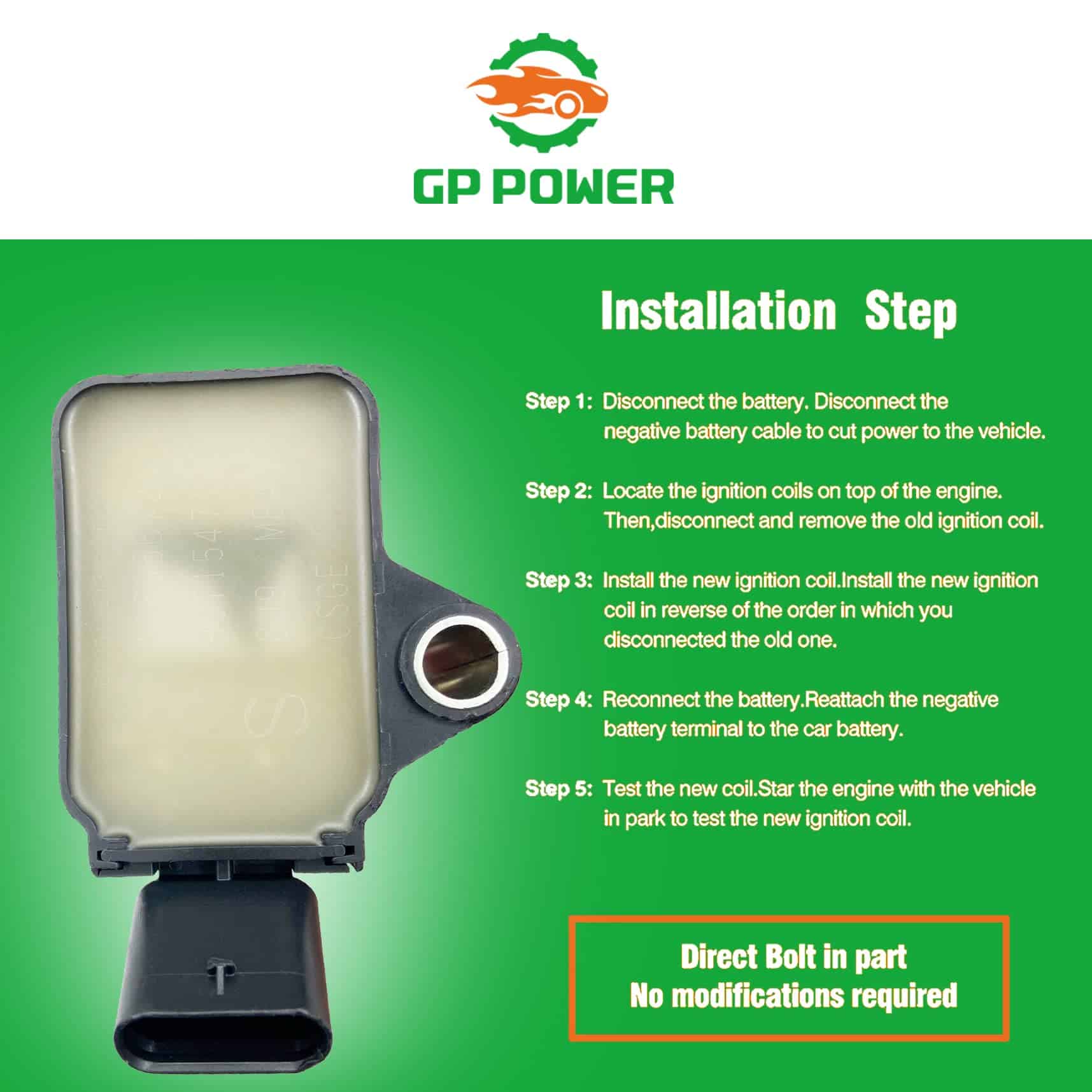 GP POWER Ignition coils are always made with high grade copper, designed for specific application and tested on road. Please review the information below carefully to make sure this part compatible with your vehicle. GP POWER utilize the latest OE technology and components to bring exceptional quality to exceed OE requirements. Our ignition coil packs can be easily located on both sides of the engine inside the engine bay which can be installed in minutes.you can experience more consistent, smooth engine starts right away. Excellent Reliability And Performance,Direct Bolt-in Replacement in Factory Location,Replaces Original Equipment Part Number. Reduces common ignition coil issues such as; no/hard start, long crank time, misfires, lack of power, inconsistent transmission shifts, spark plug fouling, premature catalytic converter failure, poor fuel economy, check engine light illumination. 1 Year Limited Warranty – Please see if this part is compatible with your vehicle