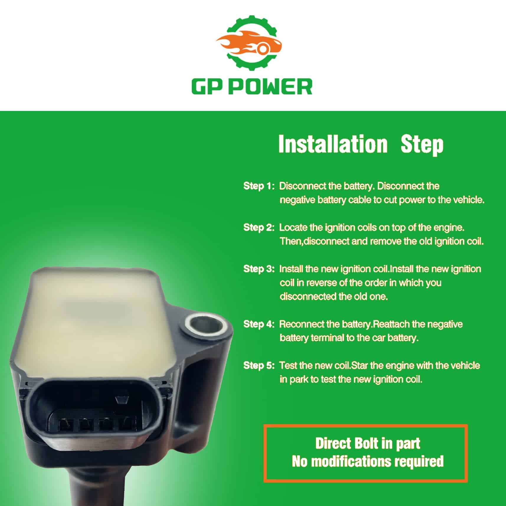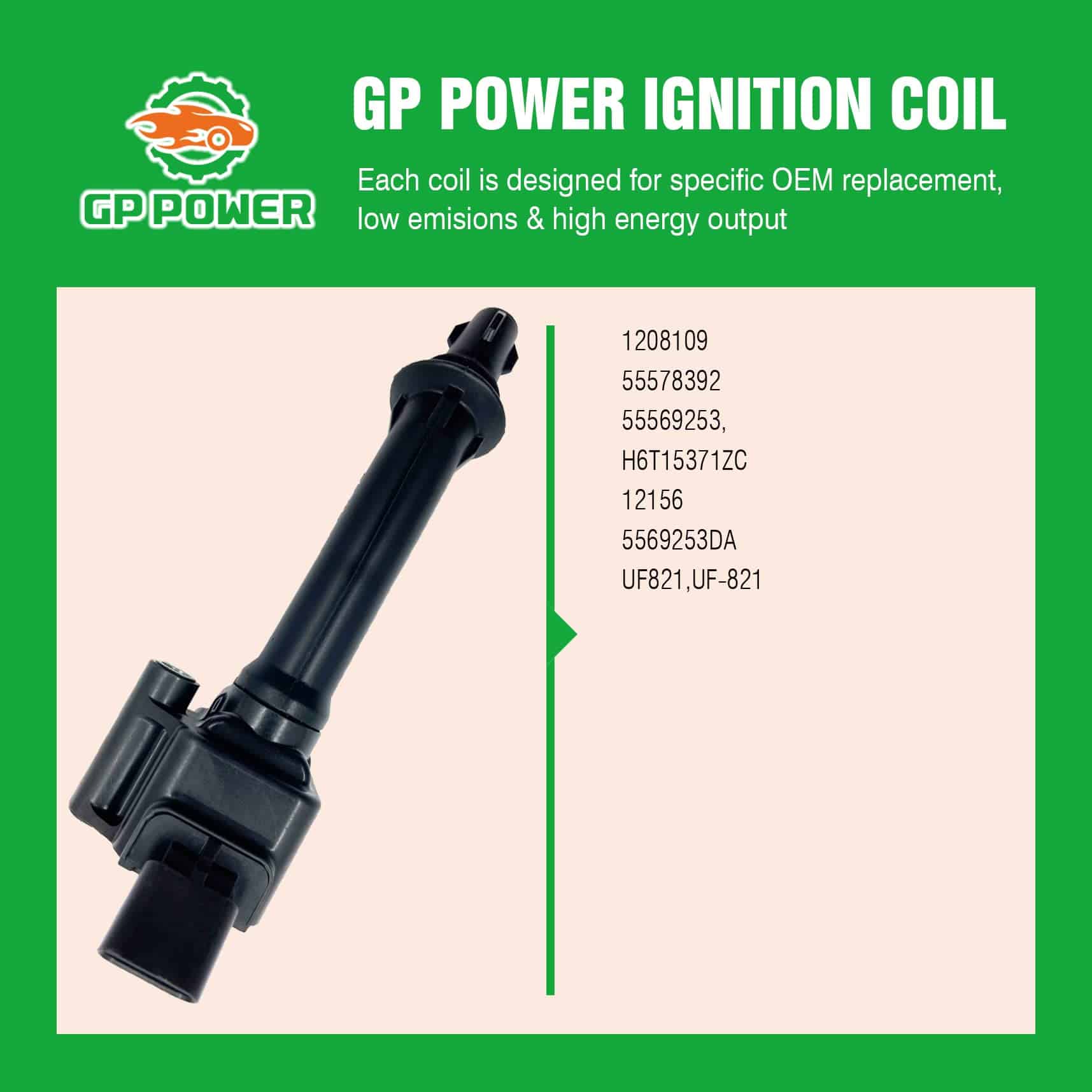 GP POWER utiliza la última tecnología y componentes OE para ofrecer una calidad excepcional que supera los requisitos OE. Nuestras bobinas de encendido se pueden ubicar fácilmente en ambos lados del motor dentro del compartimiento del motor, lo que se puede instalar en minutos. Puede experimentar arranques de motor más consistentes y suaves de inmediato.