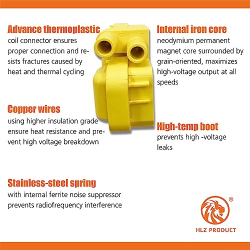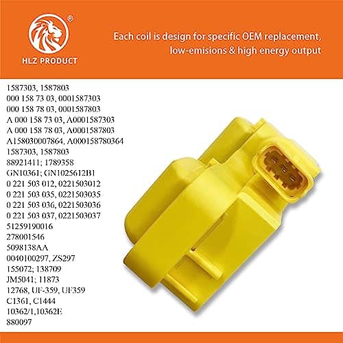 HLZ PRODUCT Ignition coils are always made with high grade copper, designed for specific application and tested on road. Please review the information below carefully to make sure this part compatible with your vehicle. HLZ PRODUCT utilize the latest OE technology and components to bring exceptional quality to exceed OE requirements. Upgrade 15% more energy than OE coils.Our ignition coil packs can be easily located on both sides of the engine inside the engine bay which can be installed in minutes.you can experience more consistent, smooth engine starts right away. Excellent Reliability And Performance,Direct Bolt-in Replacement in Factory Location,Replaces Original Equipment Part Number. Reduces common ignition coil issues such as; no/hard start, long crank time, misfires, lack of power, inconsistent transmission shifts, spark plug fouling, premature catalytic converter failure, poor fuel economy, check engine light illumination. 1 Year Limited Warranty – Please see if this part is compatible with your vehicle