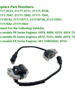 1. CALIDAD PREMIUM La bobina de encendido está hecha de materiales de alta calidad. Tiene una fuerte resistencia a altas temperaturas y características impermeables. Buena estabilidad y durabilidad, con una larga vida útil. El producto ha pasado rigurosas pruebas de calidad antes del envío y cumple o supera los estándares OEM. 2. COMPATIBILIDAD Se adapta a motores de series FR: 541V, 600V, 651V, 691V 730V; motores de series FS: 481V, 541V, 600V, 691V, 730V; motores de series FX: 481 THROUGH, 921V. (Por favor, verifique el FABRICANTE/MODELO de su vehículo antes de comprar para asegurarse de que nuestros productos sean adecuados para su vehículo.) 3. NÚMERO DE PARTE DE REEMPLAZO Reemplazo directo para 21171-0743, 21171-0711, 21171-0738, 21171-7047, 21171-7042, 21171-7041, 211710743, 211710711, 211710738, 211717047, 211717042, 211717041. Solo necesita quitar la bobina de encendido antigua y reemplazarla. Es fácil de instalar, enchufar y jugar, lo que puede ahorrarle tiempo. (Verifique si su número de parte antiguo se puede reemplazar con nuestro número de parte OEM antes de comprar.) 4. FUNCIÓN POTENTE Cuando la bobina de encendido de fábrica falla, su motor puede no poder cambiar el voltaje y no puede arrancar. Nuestra nueva bobina de encendido de alta calidad puede encender bien la mezcla de gas en el cilindro, para que la bujía pueda generar chispas y convertir la corriente de baja tensión del vehículo en electricidad de alta tensión. Ayuda a que su generador restablezca el trabajo y la operación normales del motor. 5. COMPRA CON CONFIANZA Ofrecemos un período de garantía de 12 meses para proporcionarle una experiencia de compra sin preocupaciones. Si tiene algún problema al comprar o usar, no dude en contactarnos, y resolveremos el problema lo antes posible.