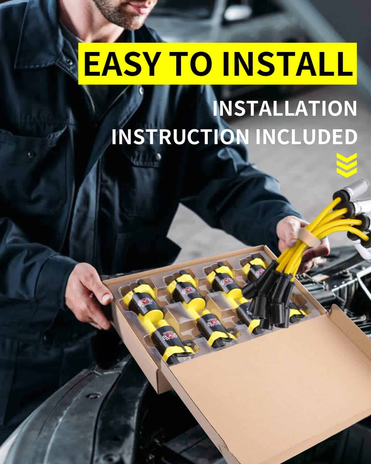 FÁCIL DE INSTALAR – Instalación fácil de Plug And Play. Listo para la instalación directamente fuera de la caja. Viene completo con protecciones térmicas de metal preinstaladas en los cables de bujía y bobinas de ajuste directo para una instalación fácil de Plug and Play. Se recomienda reemplazar todas las bobinas y cables de bujía al mismo tiempo para asegurar el funcionamiento adecuado y la preservación de los componentes de encendido.