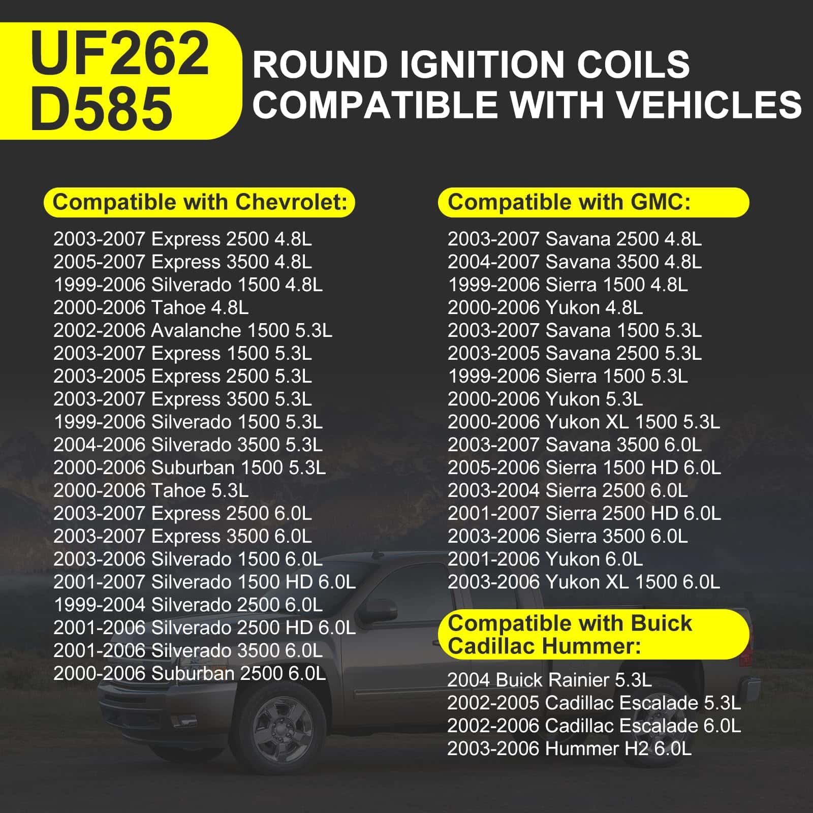 DETALLES DE AJUSTE – Bobinas mejoradas compatibles con números de parte UF262, UF-262, D585, 610-02839, 8125731900, 12573190, C1512, cables de bujía compatibles con referencias cruzadas del fabricante 12192195, 9748GG, 748UU, 748GG, 12622553, 88862397, 12192192, 7873.