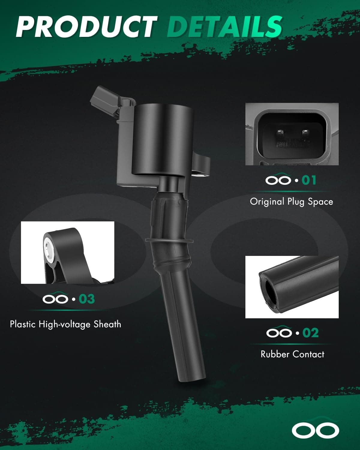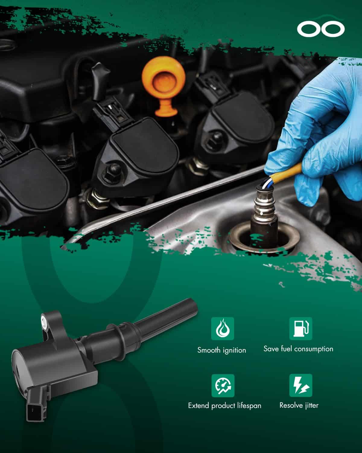 La electricidad de baja tensión de la fuente de alimentación se convierte en electricidad de alta tensión, que se convierte en chispa eléctrica de alta tensión a través de la bujía e enciende la mezcla de gas combustible. Las bobinas de encendido se pueden encontrar fácilmente dentro del compartimento del motor generalmente conectadas encima del motor una vez que se ha retirado la tapa del motor. Para evitar problemas, por favor compare la imagen del producto con las piezas originales antes de realizar el pedido. Se sugiere que la bobina de encendido y la bujía se reemplacen de manera sincronizada para reducir la probabilidad de disfunciones comunes del sistema de encendido, como la falla al arrancar, las vibraciones del motor, la falla de encendido, la potencia inadecuada, la acumulación de carbonilla en la bujía y la mala economía de combustible.