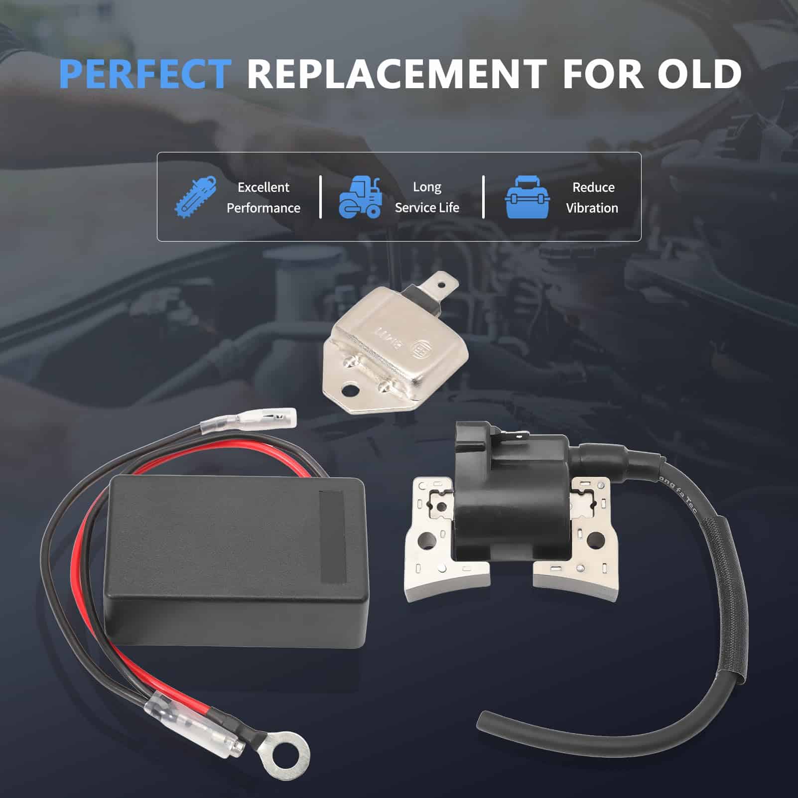 Paquete: 1x Bobina de Encendido 1x Limitador de RPM REV 1x Módulo de Encendido Tipo de Ajuste: Reemplazo Directo. Por favor, busque un video en línea para la instalación.