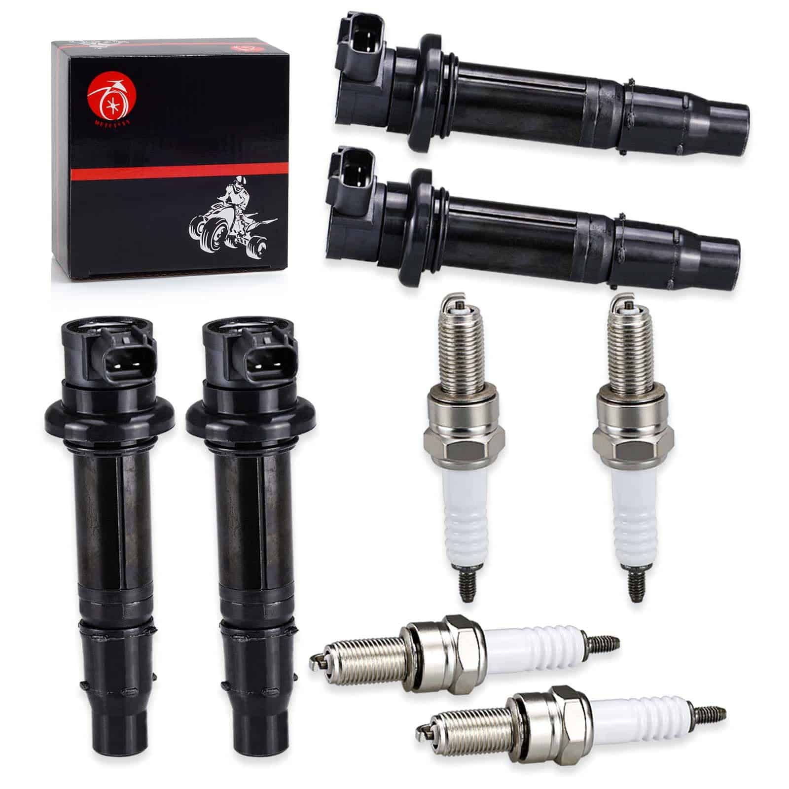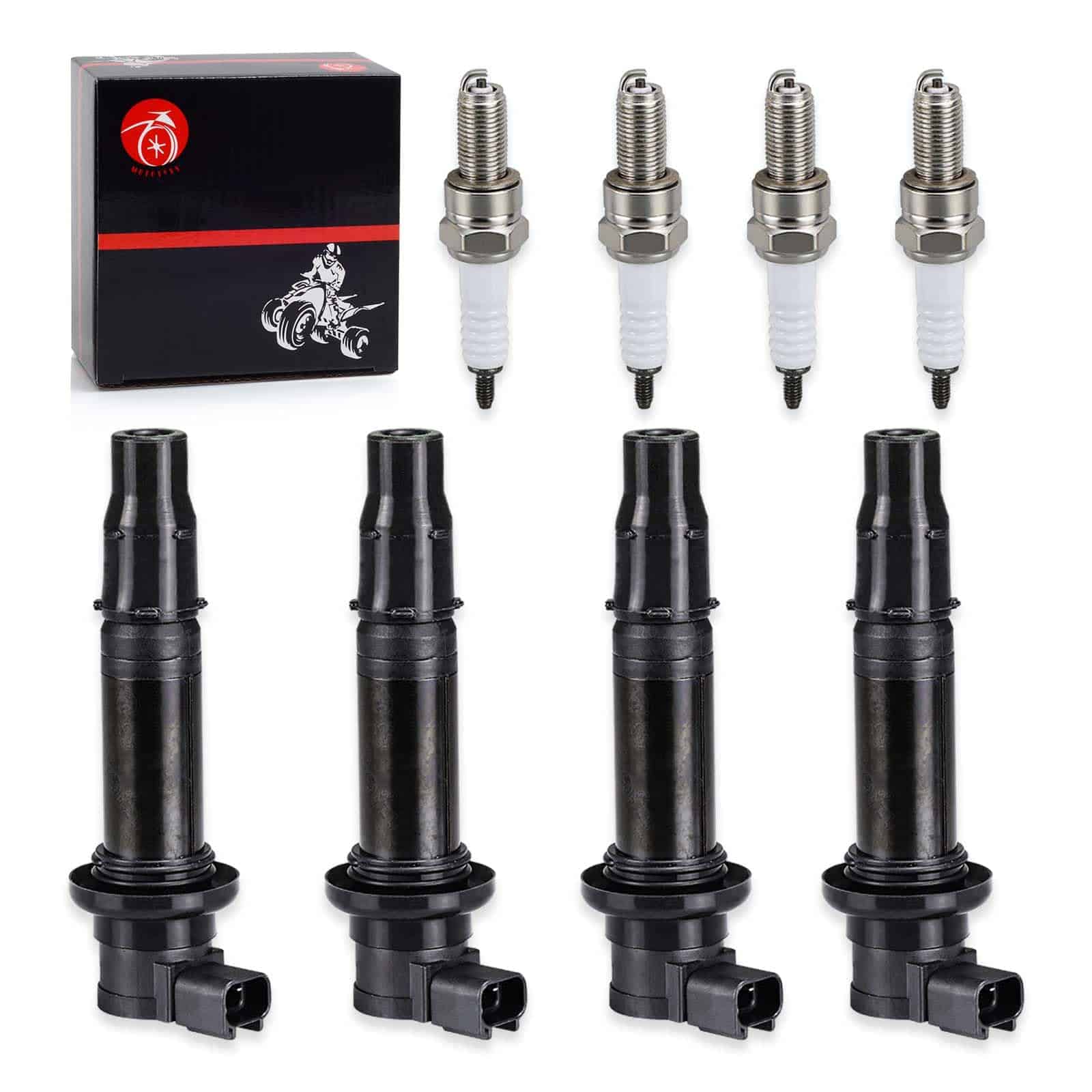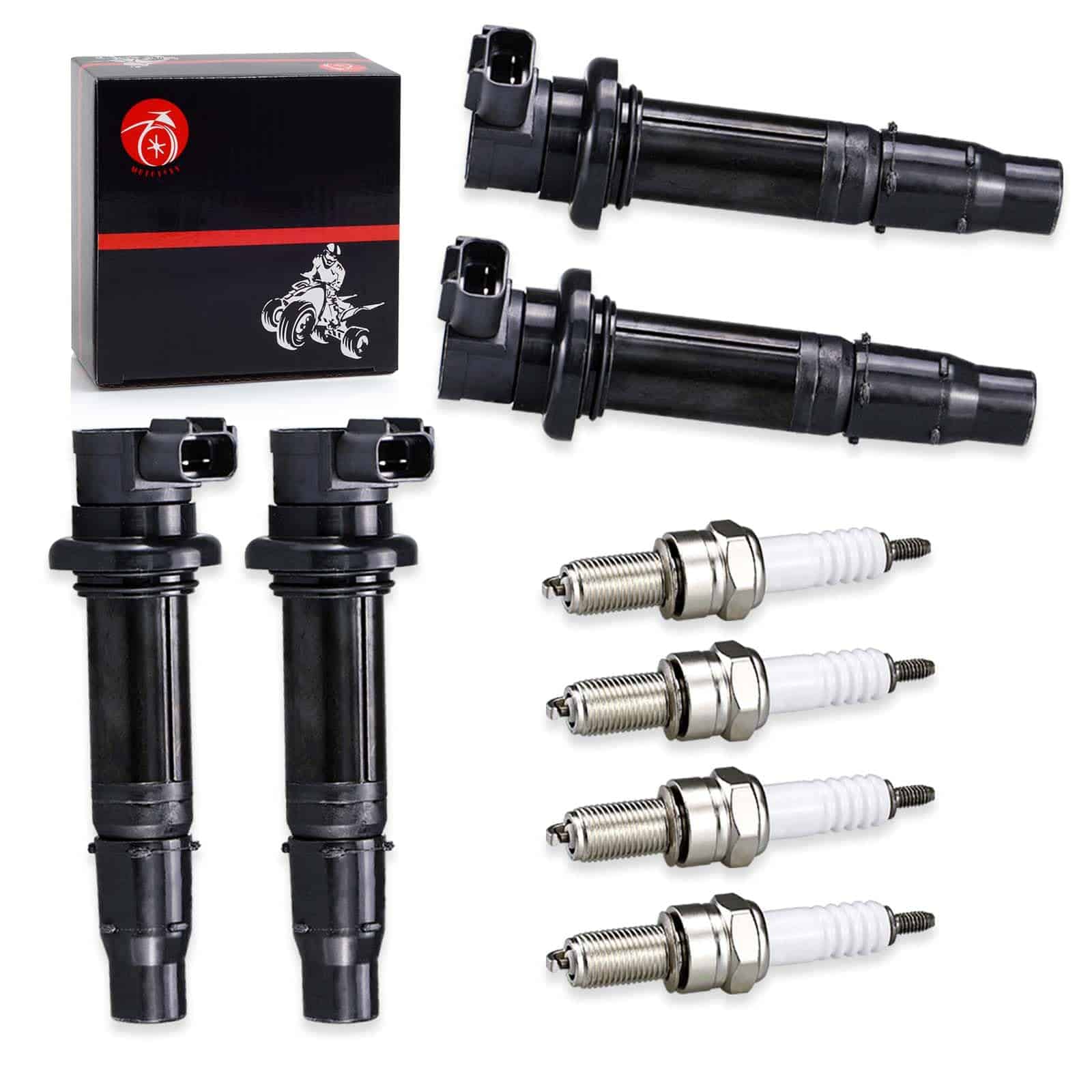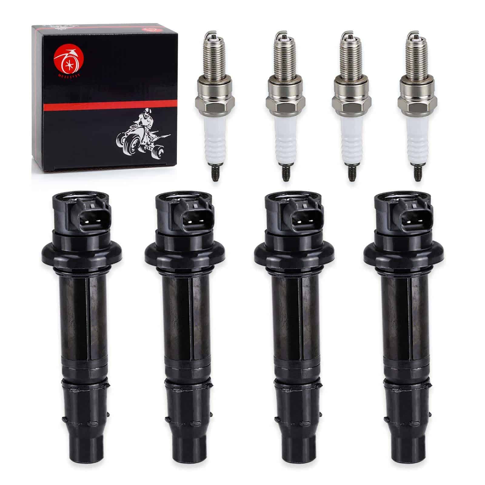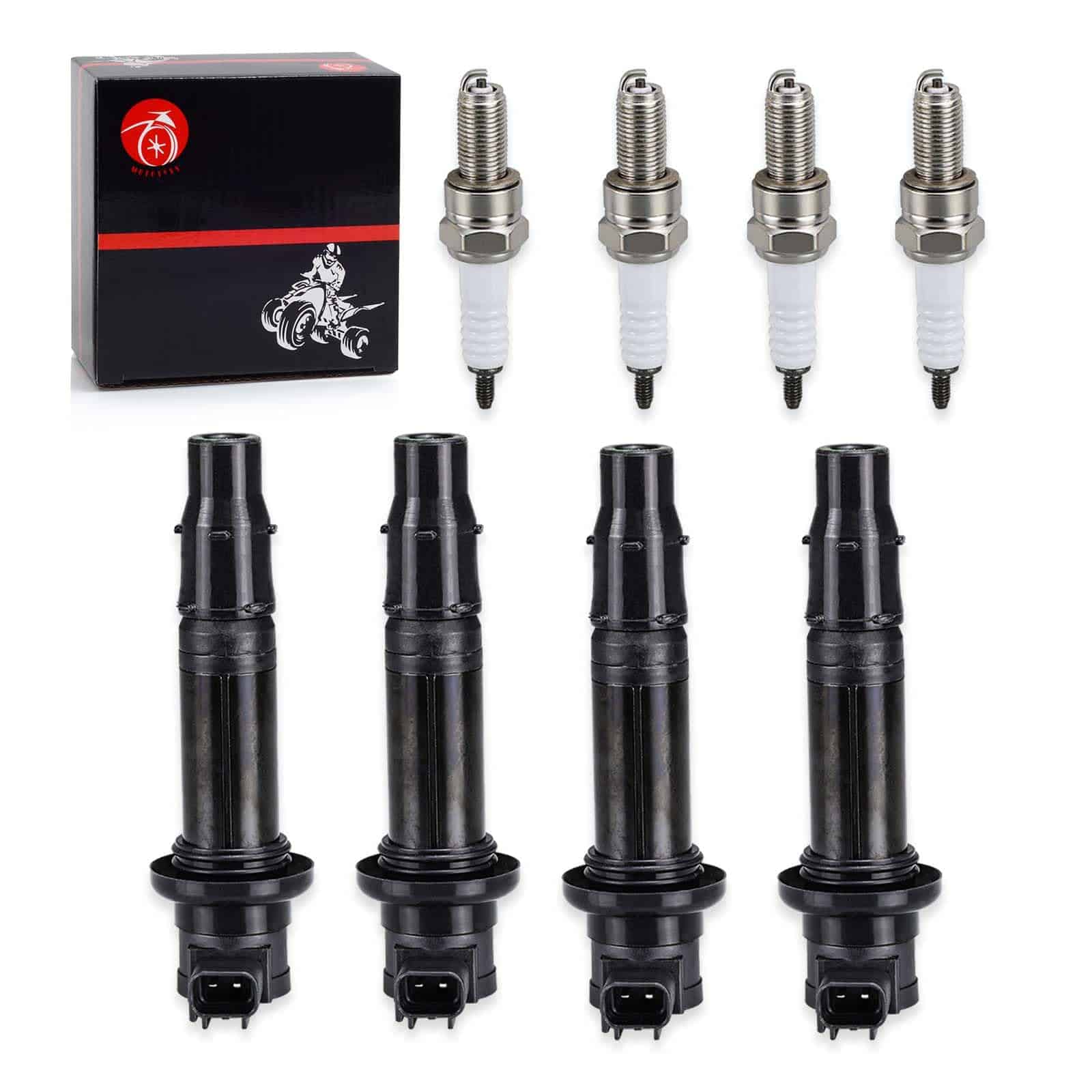 Bobina de encendido y bujía para varios modelos de Yamaha. Este paquete incluye 4 bobinas de encendido y 4 bujías. Nuestros productos son de ajuste personalizado, consulte los modelos aplicables, imágenes y números OEM en nuestra página para ayudarlo a tomar su elección. Además, ofrecemos servicio al cliente amigable las 24 horas y 1 año de servicio de producto incluido en cada compra.