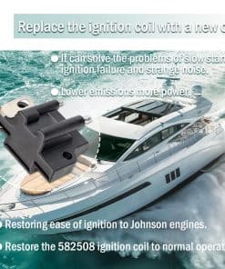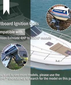 La bobina de encendido es compatible con los modelos Johnson Evinrude de 4-300HP. Ajuste para: 4HP Deluxe 1985-1999, 4.5HP 1986-1987, 5HP 1985-1991, 6HP 1985-1990, 6.5HP Commercial 1989-1990, 8HP 1985-1990, 20HP 1985-1999, 25HP 1985-1999, 30HP 1985-1999, 25HP Commercial 1985-1991, 28HP 1989-1990, 40HP 1985-1988, 40HP Commercial 1985-1990, 45HP Commercial 1985-1992, 45HP SS 1987-1990, 48HP (excepto modelos SPL) 1987-1988, 50HP 1985-1988, 55HP Commercial 1985-1992, 60HP 1985-2001, 60HP SST 1989-1990, 65HP Commercial 1985-2001, 70HP 1985-2001, 75HP 1985-1999, 85HP 1985-1995, 88HP 1987-1996, 90HP 1985-1994, 100HP 1985-1999, 110HP 1986-1990, 115HP 1985-1999, 120HP 1985-1999, 125HP 19991-1999, 125HP Commercial 1989-1999, 140HP 1985-1999, 150HP (excepto Loop) 1985-1999, 155HP Commercial (excepto Loop) 1984-1999, 175HP (excepto Loop) 1985-1999, 185HP 1984-1999, 200HP 1985-1999, 225HP 1986-1999, 250HP 1991-1999, 275HP 1985-1999, 300HP 1985-1999. Reemplazar OE : 582508 18-5179 183-2508. Función: La bobina de encendido para motores fuera de borda es un transformador que puede amplificar el pequeño voltaje de la batería en suficiente electricidad para encender el combustible y arrancar el motor. Lista de paquetes: Bobina de encendido x 4 piezas. Calidad: La bobina de encendido está fabricada por un fabricante certificado por la ISO y cumple o excede los requisitos OEM. Inspección 100% de fábrica y durab