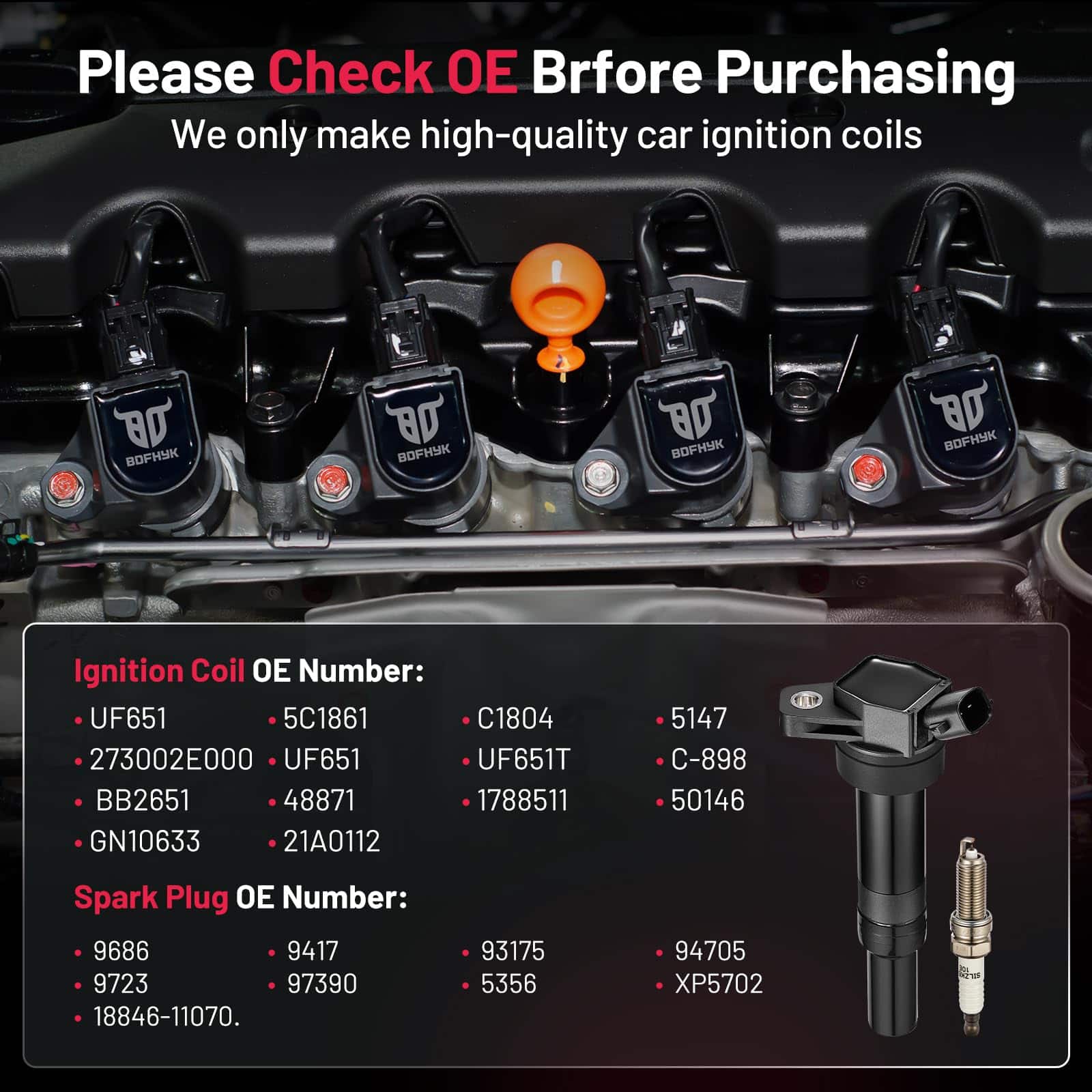 4. Compre con Confianza Cuando su automóvil haya recorrido más de 80.000 km y presente problemas como arranque duro, tiempo de arranque excesivo, falta de potencia y aumento del consumo de combustible, puede necesitar reemplazarlo con un nuevo juego de bobinas. ¡Reemplazar nuestras bobinas de encendido puede hacer que su automóvil parezca nuevo! Puede elegirlo con confianza.