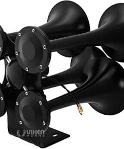 Esta potente bocina de tren de cuatro trompetas produce un sonido rugiente y fuerte. De color negro, hecha completamente de metal para una protección máxima contra todas las condiciones climáticas. La bocina viene con un solenoide de 12V, manguera y hardware de montaje. Se requiere un sistema de aire a bordo para su funcionamiento. Ideal para todos los vehículos con sistema de 12V. Esta bocina sin duda llamará toda la atención que estás buscando. Bocina de Tren de Aire Cuádruple (Negra) Construcción de Metal Válvula de Aire Eléctrica de 12V (Solenoid) con Conexión de Compresión Manguera de Plástico de Nylon de » de diámetro (6 pies) Hardware de Montaje Incluido Tamaño de la Bocina 16- » L x 15″ A x 11″ H Nota: Se Requiere Sistema de Aire a Bordo