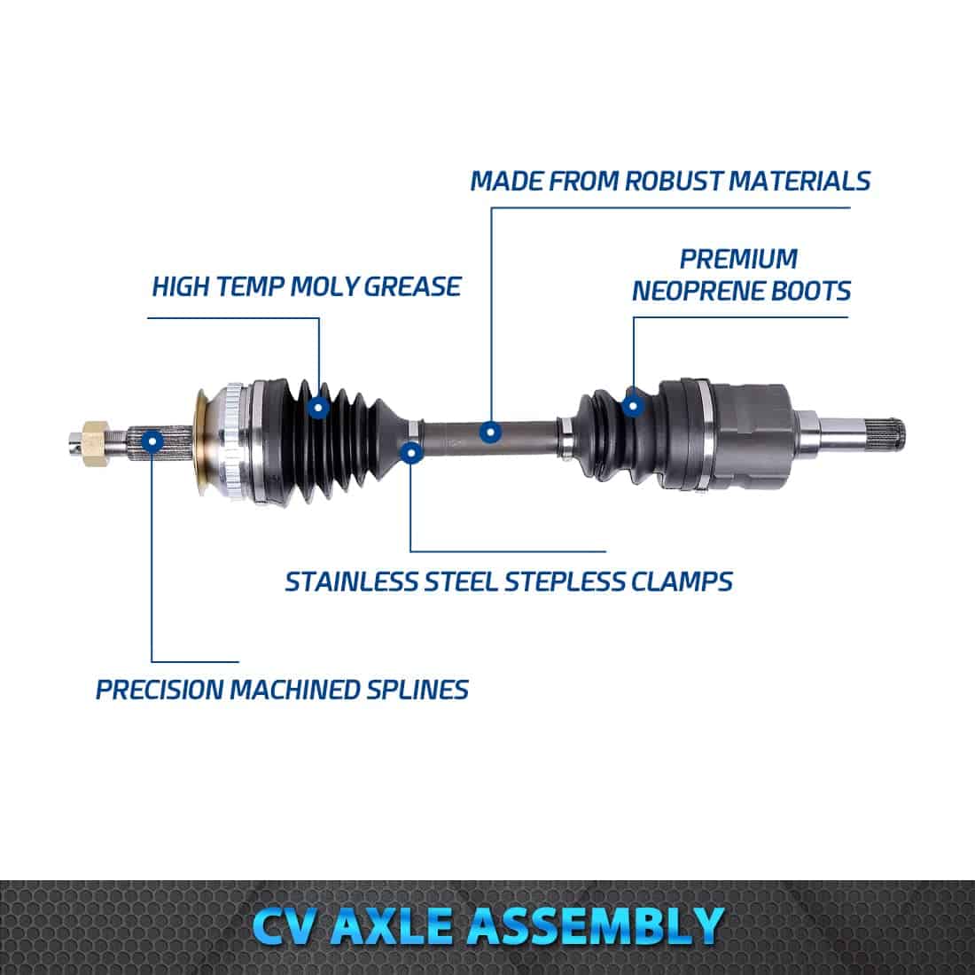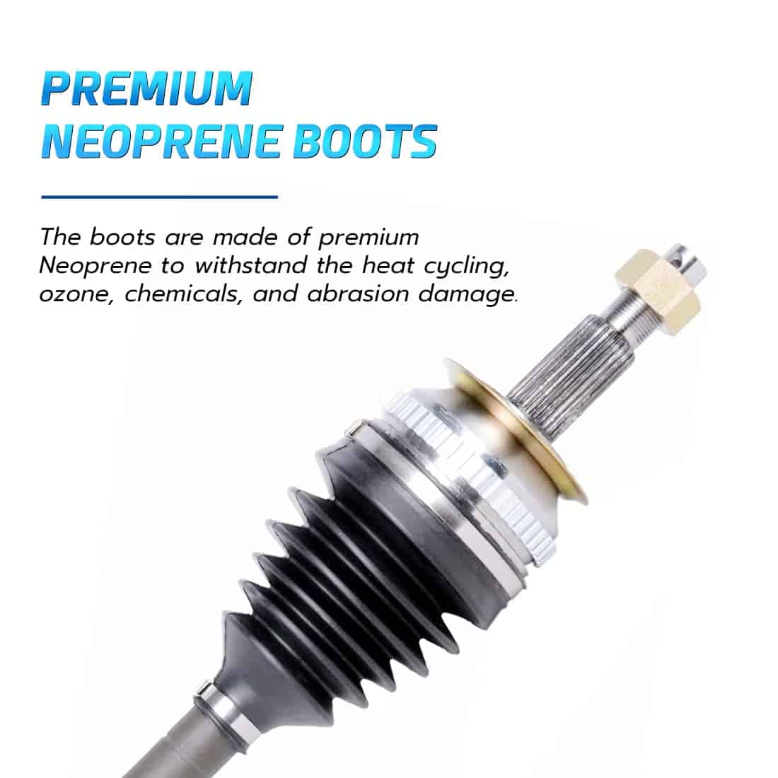 2. Eje completo CV completamente ensamblado con juntas CV y botas de neopreno, ajuste exacto garantizado para una instalación fácil.