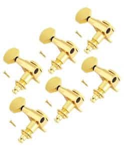 Estas clavijas de afinación cuentan con una función de bloqueo de rueda para mantener tus cuerdas seguras en su lugar. Esto evita el deslizamiento de las cuerdas y también te permite cortar el exceso de cuerda. No tendrás que envolver la cuerda alrededor de los postes varias veces como haces con un afinador de máquina sin bloqueo. Simplemente pasa la cuerda a través del agujero en la clavija, luego gira la rueda para asegurarla en su lugar. Simple y efectivo, acelera el cambio de cuerdas. El nuevo diseño elegante y la suave relación de engranajes de 1:18 te ofrecen una gran combinación de estabilidad de afinación, precisión y buena apariencia. Estas clavijas de afinación tienen una carcasa sellada y un agujero de tornillo de montaje a 45 grados. Con engranaje interno resistente, sólido y conveniente. La guitarra no se desafinará si bloqueas el poste del tornillo al afinar la guitarra correctamente. Fáciles de instalar, excelente reemplazo para tus antiguas o sucias clavijas de afinación de guitarra. ESPECIFICACIONES: Juego de clavijas de afinación selladas con bloqueo de giro Función de bloqueo de rueda de pulgar Material: Aleación de zinc Color: Oro Relación precisa de 1:18. Requiere agujeros de cabeza de clavija de 3/8 (10mm) Ubicación: 6 derecha Para la mayoría de aplicaciones modernas de cabeza de clavija 100 por ciento nuevo, construcción de alta calidad. PAQUETE INCLUYE: 6 x Clavijas de afinación con bloqueo para guitarra (6 en línea para diestros) 6 x Férula 6 x Casquillo roscado 6 x Tornillo NOTA IMPORTANTE: Por favor, verifica si este artículo es adecuado para tu instrumento según las especificaciones del artículo antes de realizar el pedido. ¡Gracias!