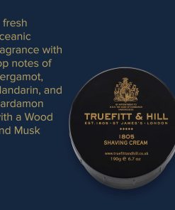 Una excelente manera de lograr un afeitado increíblemente cerca y cómodo, este bol de crema de afeitar Truefitt & Hill en la fragancia 1805 es perfecto para viajar. Con notas altas de Bergamota, Mandarina y Cardamomo, combinadas con un corazón de Lavanda, Geranio y Salvia Esclarea, esta crema de afeitar se basa en una base de madera de Sándalo, Cedro y Almizcle. Inspirada en una formulación de finales de la década de 1850 creada para el Vizconde Palmerston, uno de los primeros ministros de la Reina Victoria, la fragancia 1805 lleva el nombre en honor a la apertura del salón de William Francis Truefitt en 1805. Formulado con una exquisita mezcla de esencias raras, naturales y sofisticadas, este producto forma parte de una línea completa de productos para afeitar, fragancias, cabello y baño que proporcionan una solución de cuidado diario para el hombre moderno. Truefitt & Hill, reconocido como el mejor barbero y perfumista tradicional para caballeros en Londres, ha brindado a los hombres exigentes solo lo mejor en productos y servicios de aseo.