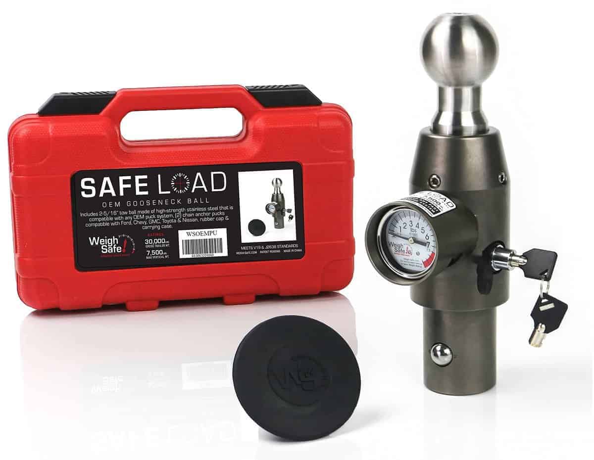 Weigh Safe es el líder de la industria del remolque en Tranquilidad de remolque. Presentamos la primera Bola de inserto de enganche gooseneck que puede medir verdaderamente su Peso de lengüeta (Carga de perno). Con nuestros continuos esfuerzos en revolucionar la industria del remolque y ofrecer a nuestros clientes una Tranquilidad de remolque, ahora ofrecemos una Bola de enganche gooseneck verdaderamente completa llamada Safe Load . Nuestra Bola de inserto de enganche gooseneck Safe Load de Weigh Safe incluye True Tow Technology . Con calificaciones de peso que van desde 30,000 lbs hasta 35,000 lbs, nuestra Bola de inserto de enganche gooseneck Safe Load está diseñada para superar las necesidades de nuestros clientes. Nuestro Sistema Safe Load con manómetro incorporado es simple de operar y proporciona automáticamente una medición de peso de la lengüeta cada vez que acopla su remolque, eliminando la necesidad de escalas comerciales separadas y a menudo difíciles de operar. Cuando se coloca en el receptor gooseneck de su vehículo y se conecta a su remolque, el peso del enganche de su remolque empujará hacia abajo el casquillo del remolque, que a su vez empujará hacia abajo un pistón hidráulico interno que descansa sobre una capa de aceite hidráulico industrial. Cuando el pistón aplica presión al aceite hidráulico industrial, la lectura de presión se muestra en el manómetro de acero inoxidable de alta resistencia. Este Inserto de bola incluye una bola de remolque de 2-5/16 permitiendo su uso con una amplia variedad de remolques y aplicaciones. Con la flexibilidad integrada y la Construcción de acero inoxidable endurecido, esta será la última Bola de inserto de enganche gooseneck que poseerá.