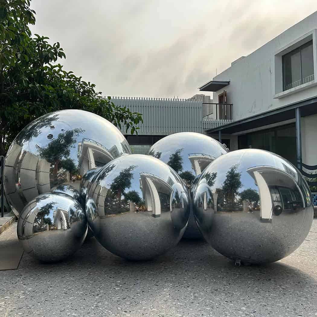 1. Estructura de doble capa – La bola de espejo inflable está compuesta por un revestimiento interior (PVC de 0.4 mm) y una carcasa exterior (material de espejo de 0.3 mm). Esta estructura permite que el producto sea reutilizable, se puede inflar varias veces y asegura una fuerte hermeticidad cuando se utiliza en ambientes de baja y alta temperatura.